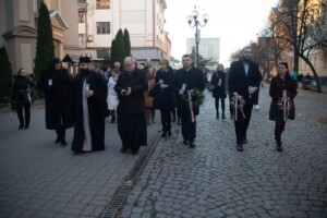 Після богослужіння відбулася свічкова хода. Учасники пам’ятної церемонії брали участь у покладанні вінків до меморіальних дошок біля входу до ліцею імені Т. Г. Шевченка, а також до пам’ятника жертвам «маленких робіт» на площі Сінна.