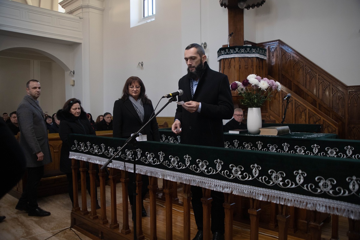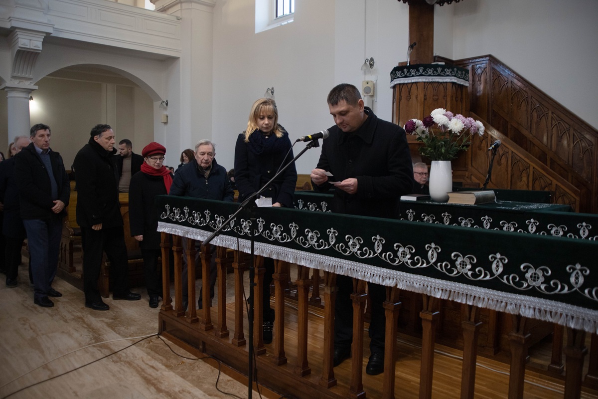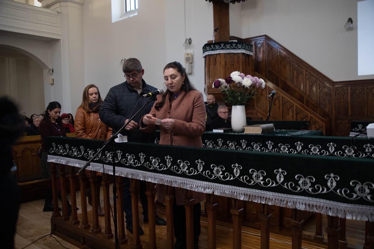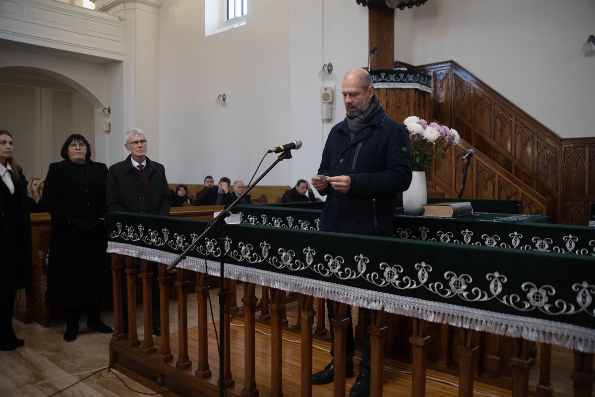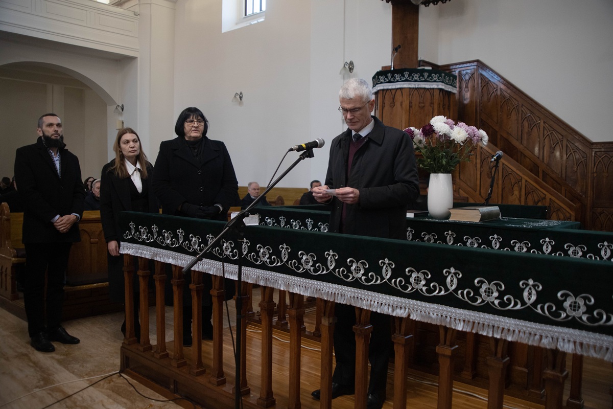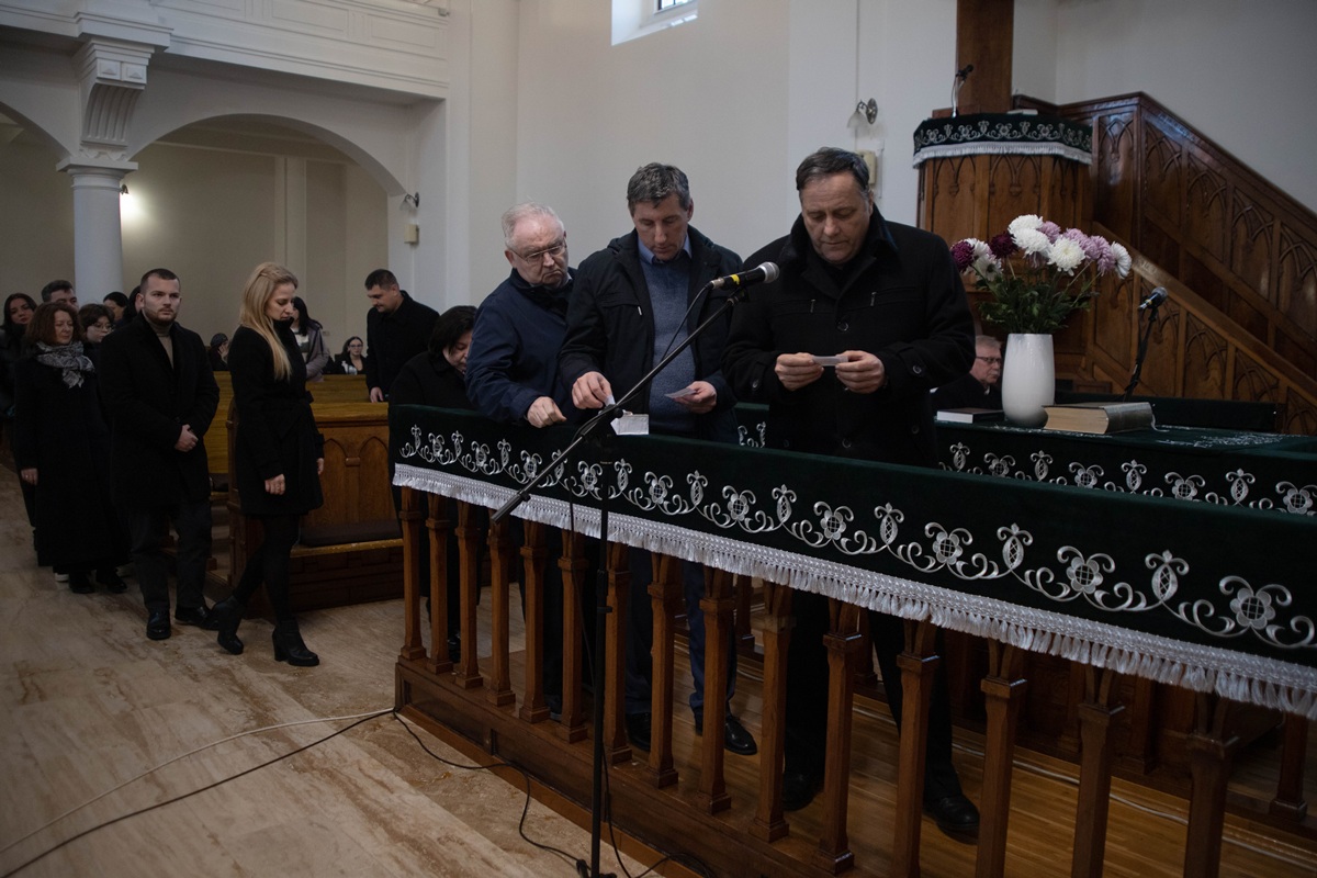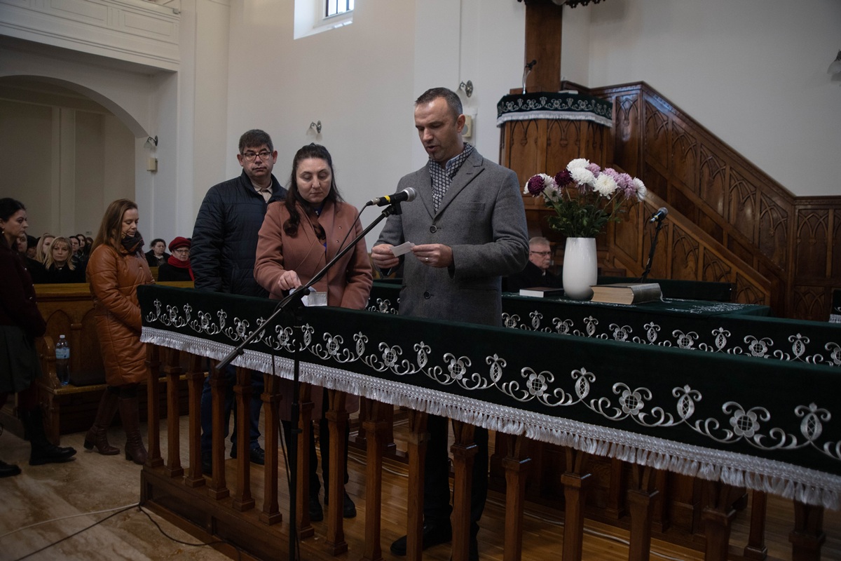 Після вітальної промови ректора присутні по черзі зачитали імена понад 300 жертв – уродженців Берегова, єдиним гріхом яких було те, що вони народилися угорцями, а потім поклали вінки пам’яті у вестибюлі реформатської церкви.