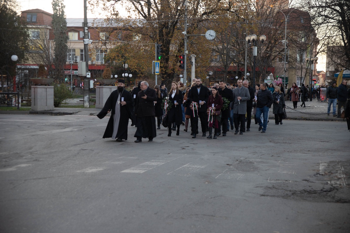 Після богослужіння відбулася свічкова хода. Учасники пам’ятної церемонії брали участь у покладанні вінків до меморіальних дошок біля входу до ліцею імені Т. Г. Шевченка, а також до пам’ятника жертвам «маленких робіт» на площі Сінна.