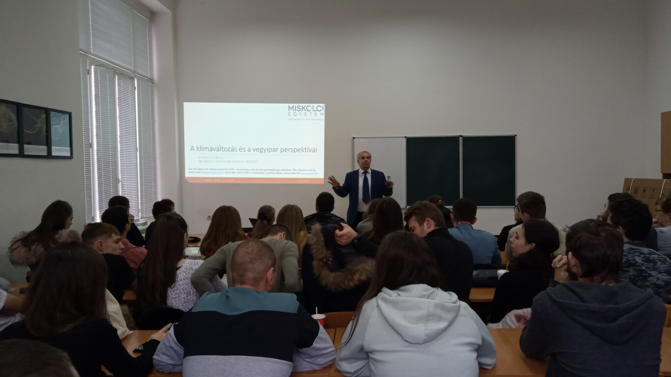 Д-р Вішкольц Бейло (Dr. Viskolcz Béla) виступив з презентаціями про зв’язок між кліматичними змінами і перспективами хімічної промисловості. Під час його лекцій ми дізналися про можливі, перспективні способи зменшення масштабних викидів вуглекислого газу та можливості їх застосування у виробничих процесах.