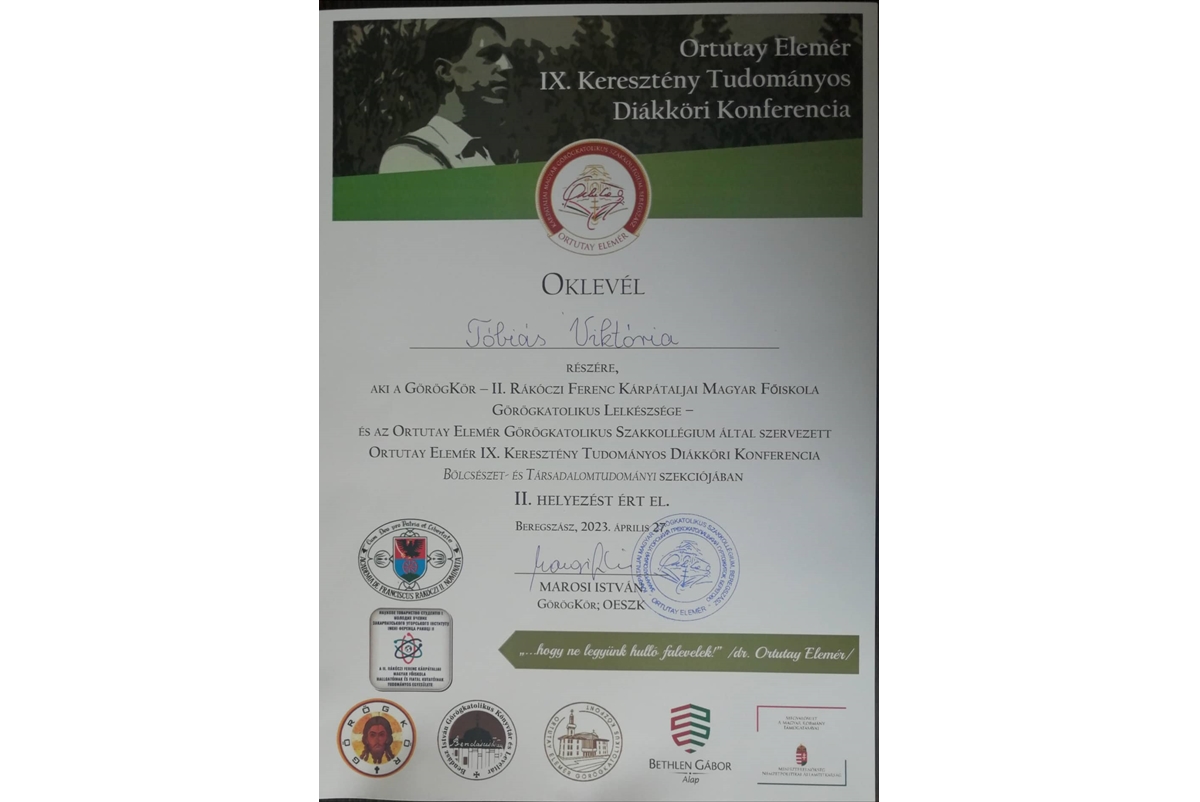 Греко-католицька духовність ЗУІ імені Ференца Ракоці ІІ, та греко-католицький гуртожиток ім. Елемера Ортутая 27 квітня 2023 року організували ІХ. християнську студентську конференцію імені Елемера Ортутая, на якій серед інших були представлені студенти кафедри філології.