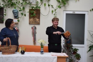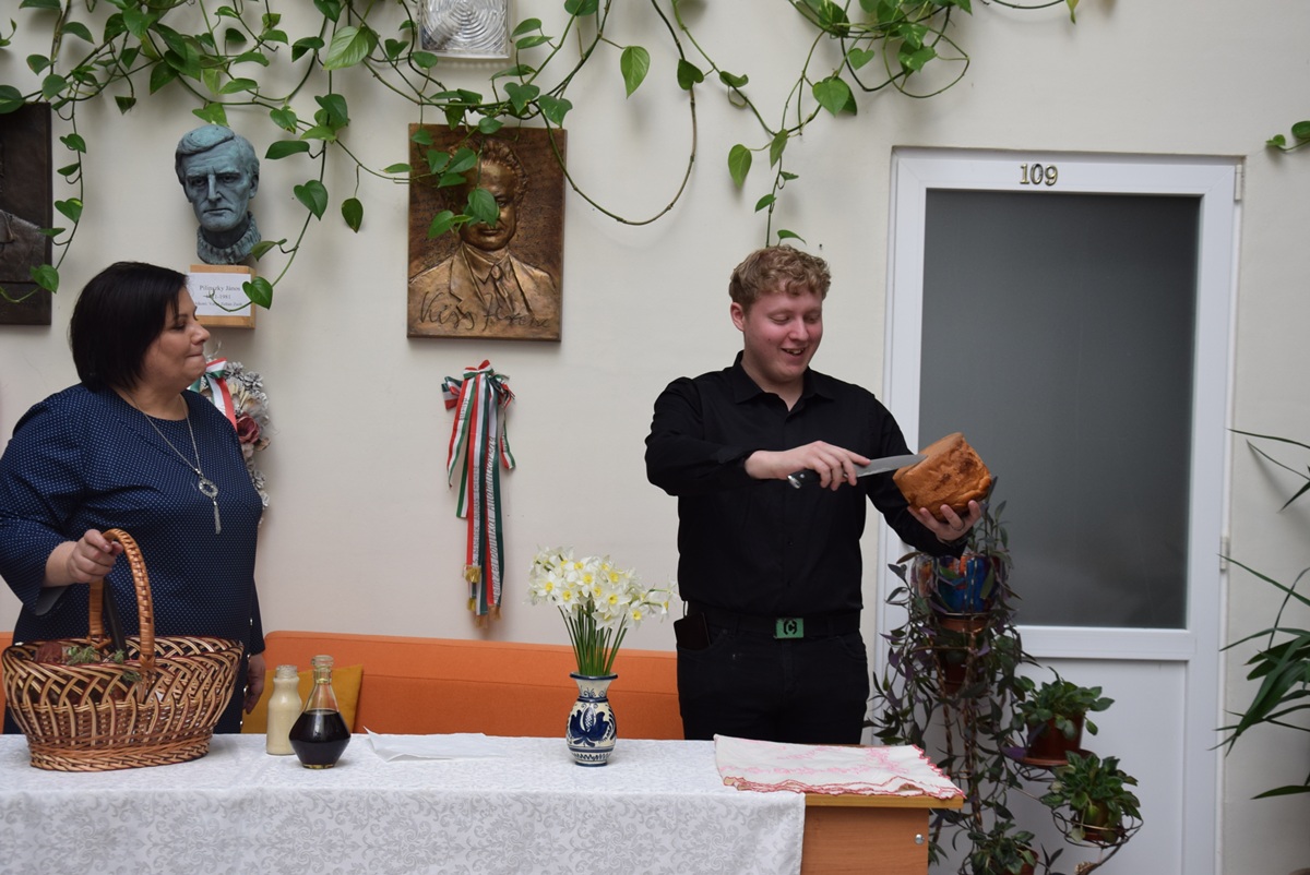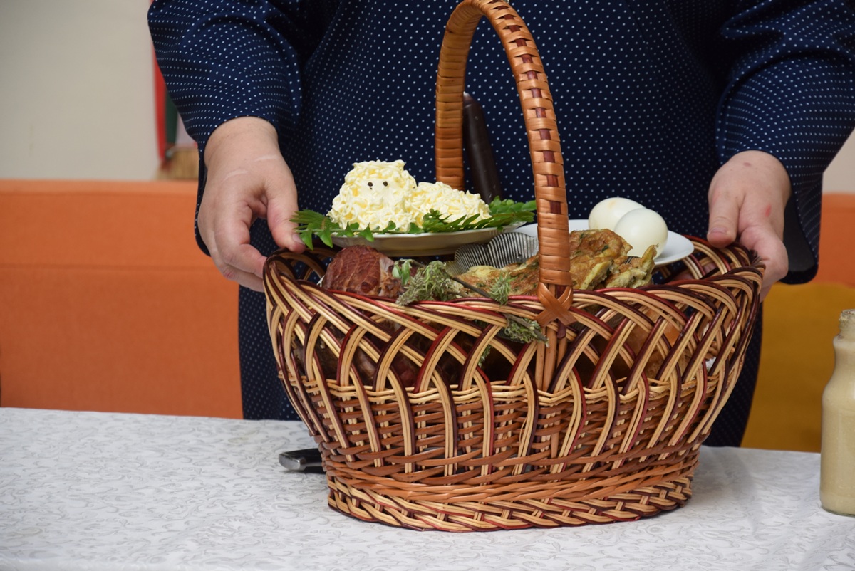 У вестибюлі філологічного кампусу присутніх привітала доцентка кафедри угорської мови Маргаріта Кейс. Вона висловила радість з приводу того, що стільки людей вшанували захід своєю присутністю, адже співробітники кафедри доклали зусиль, аби підготувати змістовну програму, яка б ознайомила відвідувачів із великодніми традиціями та звичаями. Після цього, етнографиня презентувала традиційні продукти, якими зазвичай наповнюють великодній кошик і які приносять до церкви для освячення. Серед них найважливішими є: масло у формі ягняти, крашанки, буряк, хрін, вино, шинка, ковбаса, а також паска що накривається пасхальною скатертиною. Учасники заходу також дізналися про цікаву традицію наших предків: за народним повір’ям, той, хто останнім повернеться додому після освячення великоднього кошика, відійде у вічність протягом року, а той, хто першим переступить поріг свого дому, – першим збере врожай.