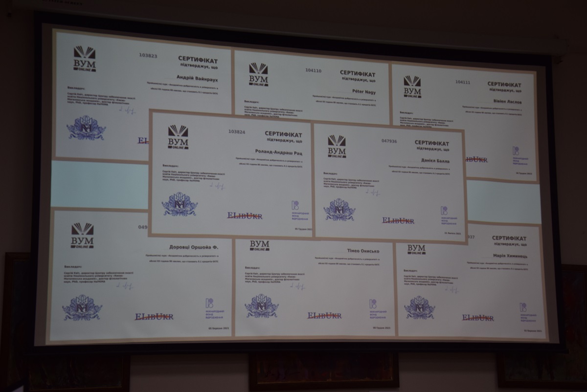 Цього ж дня студенти-першокурсники спеціальностей 071 «Облік і оподаткування» та 072 «Фінанси, банківська справа, страхування та фондовий ринок (Фінансова безпека)» успішно пройшли онлайн-курс за темою «Академічна доброчесність в університеті» та отримали сертифікати.