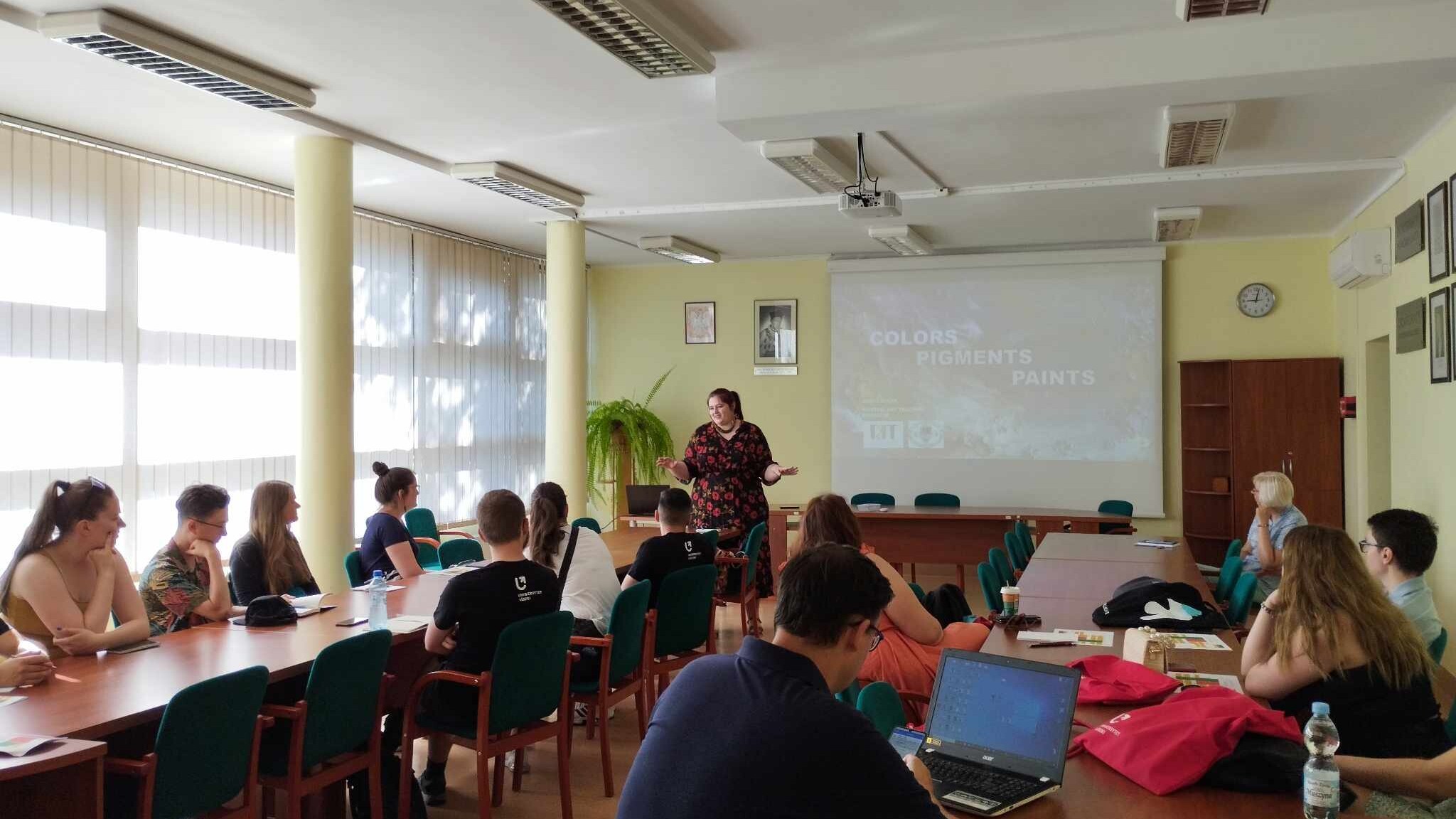 На практикумі (майстер-класі), який проходив на англійській мові, своєю презентацією під назвою «Кольори-Пігменти-Фарби» Кулін Агнеш привернула увагу до зв’язку між образотворчим мистецтвом і хімією. Під час виступу були розглянуті наступні теми:
