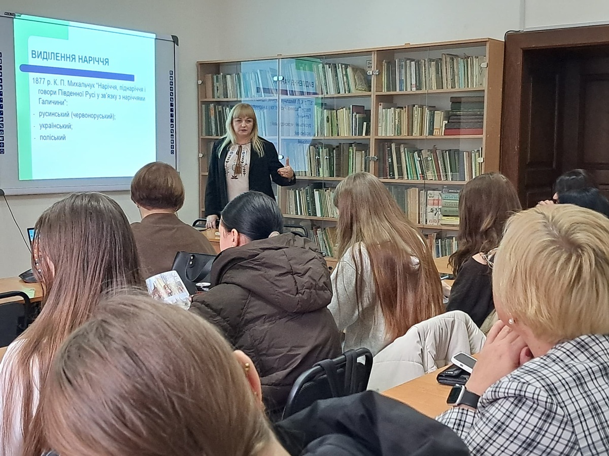 27 листопада 2025 року завідувачка кафедри української мови та методики її навчання Житомирського державного університету імені Івана Франка, кандидатка філологічних наук, доцентка Галина Іванівна Гримашевич у рамках дисципліни «Українська діалектологія» прочитала лекцію на тему «Лінгвальні риси поліського наріччя» для студентів-філологів бакалаврського та магістерського рівнів.
