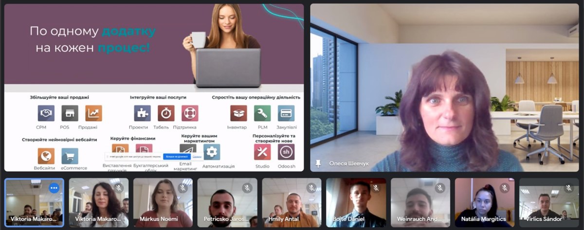 Впродовж зустрічі здобувачі знайомились з інструментами, модулями та ключовими перевагами Odoo як платформи з відкритим кодом, яка вирішує завдання моделювання, контролю, аналізу й управління бізнес-процесами.
