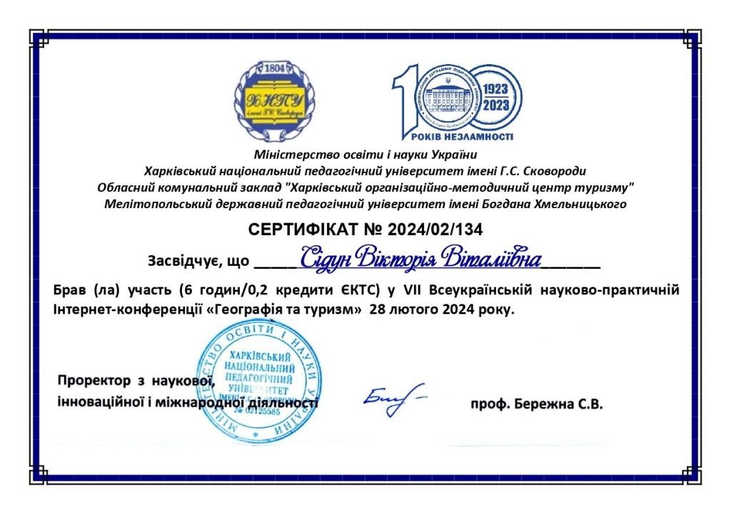 Цього року студенти кафедри взяли участь у таких конкурсах наукових робіт як міжнародний конкурс студентських наукових робіт «BLACK SEA SCIENCE 2024» та Всеукраїнський конкурс студентських наукових робіт зі спеціальності «Туризм і рекреація». Також, студенти кафедри взяли участь у таких конференціях як XVIII Закарпатська угорська студентська наукова конференція, VII Всеукраїнська науково-практична Інтернет-конференція «Географія та туризм», V Всеукраїнська наукова конференція «Розвиток сучасної науки: актуальні питання теорії та практики», XІХ Наукова конференція «Моделювання та інформаційні технології у фізичному вихованні і спорті», щорічна Студентська конференція, організована кафедрою географії та туризму.