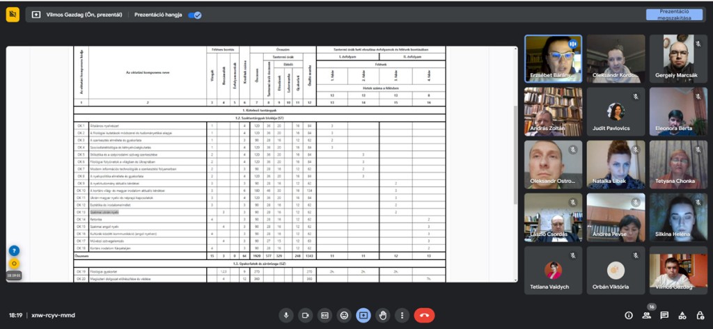 5 березня 2024 року відбулася онлайн-зустріч проєктної групи освітньо-наукової програми за освітнім рівнем Магістра спеціальності 035 Філологія (Угорська мова та література) (до складу проєктної групи входять: гарант освітньої програми Вільмош Газдаг, члени Степан Черничко та Аніко Берегсасі, професори кафедри філології, Маргаріта Кейс та Василь Чордаш, доценти кафедри філології та Вікторія Орбан, здобувачка І курсу) з метою обговорення змін до освітньо-наукової програми за освітнім рівнем Магістр спеціальності 035 Філологія (Угорська мова та література).