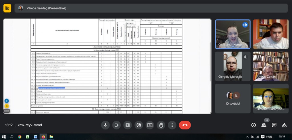 Під час зустрічі розробники освітньо-наукової програми врахували рекомендації Міністерства освіти і науки України, набутий досвід, пропозиції зовнішніх зацікавлених сторін (стейкхолдерів) та студентів, які беруть участь у розробленні програмі. Тому в новому навчальному році будуть певні зміни в освітньо-науковій програмі: введено обов’язковий компонент «Українська мова за професійним спрямуванням» та «Фахова англійська мова». Практичній підготовці буде приділено більше уваги, а кількість кредитів за практичну підготовку буде збільшено. Зовнішні стейкхолдери (Вільмош Газдаг, редактор часопису «Acta Academiae Beregsasiensis, Philologica», Андраш Золтан, доктор Угорської академії наук, професор-емерит кафедри української філології Будапештського університету ім. Лоранда Етвеша, редактор часопису «Studia Slavica Academiae Scientiarum Hungaricae» та «Magyar Nyelv», Берта Елеонора Тіборівна, доктор філософії, директор Центру гунгарології Ужгородського національного університету позитивно оцінили співвідношення між теоретичною та практичною блоками у програмі.