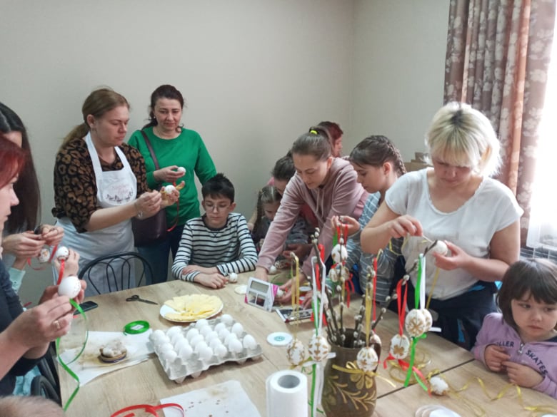 Надана допомога проявляється не лише в поселенні та в забезпеченні необхідного. В установі організували святкову підготовку з розмалюванням пасхальних яєць та виготовленням жовтого сиру (Будзик) з співпрацею “Про Культура Субкарпатіка”. Члени організації рукоділля ознайомили та вчили один з місцевих традиційних способів фарбування пасхальних яєць, а саме “Воскові писанки”. Всі хто брав участь спробували фарбування – писачком (дряпанкою).