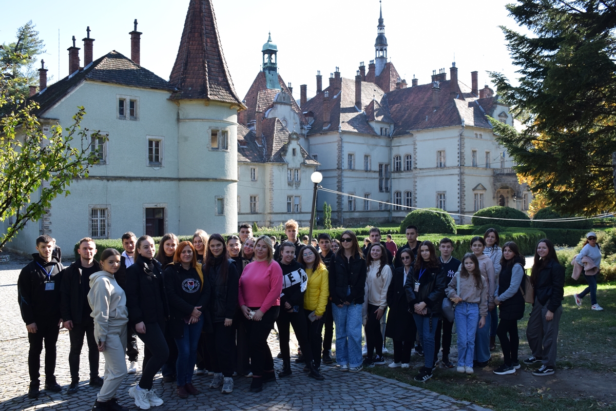 Наступною зупинкою став палац Шенборнів у с. Карпати. Після короткої, але насиченої прогулянки до об’єкту студенти познайомилися зі структурою, легендами та нинішнім призначенням будівлі та території навколо неї.