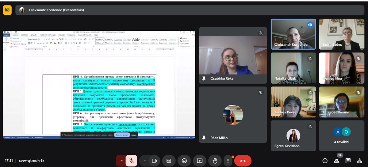 1 квітня 2025 року відбулося обговорення змісту освітньої програми «Середня освіта. Українська мова та література», до якої долучилося Студентське самоврядування Закарпатського угорського інституту імені Ференца Ракоці ІІ (СС ЗУІ ім. Ф. Ракоці ІІ).