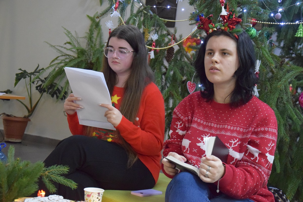 У рамках дисципліни за вибором «Основи письменницької майстерності» 4 грудня у святковій атмосфері відбулася зустріч усіх охочих поділитися своїми творчими здобутками – поезіями, піснями та прозою. Усі присутні мали змогу потрапити в чарівну різдвяно-новорічну казку, у якій добро завжди перемагає зло, мрії збуваються, а дива трапляються з тими, хто в них по-справжньому вірить.