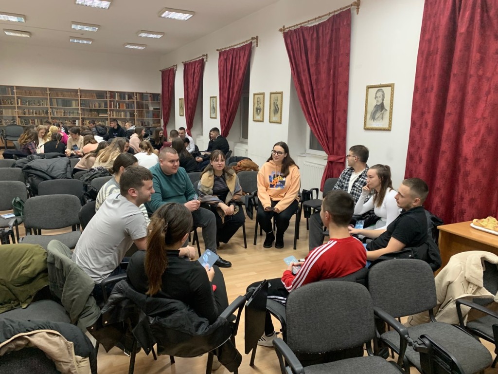 У рамках другого заходу дня відбулася зустріч зі студентами Гуртожитку імені Кальвіна, де відбувся тренінг на тему «Як впоратися з внутрішнім напруженням на тлі агресії». На початку заняття звучали натхненні пісні у виконанні гурту молодіжної організації реформатської цекрви «FRIGY», які створили піднесену атмосферу та допомогли учасникам налаштуватися на спільну роботу. Під час виконання інтерактивних вправ студенти за допомогою кольорів та кругових діаграм зображували свої емоції, а потім виконували креативні вправи, основний акцент в яких робився на пошуку шляхів вирішення конфліктних ситуацій. У вправі «Лабіринт джерел напруги» групи розробляли стратегії вирішення конфліктів мирним шляхом та презентували свої рішення у вигляді відеороликів, що відповідають сучасним трендам (див. відео одного з заходів, музика: Lux-Inspira – The Champion).