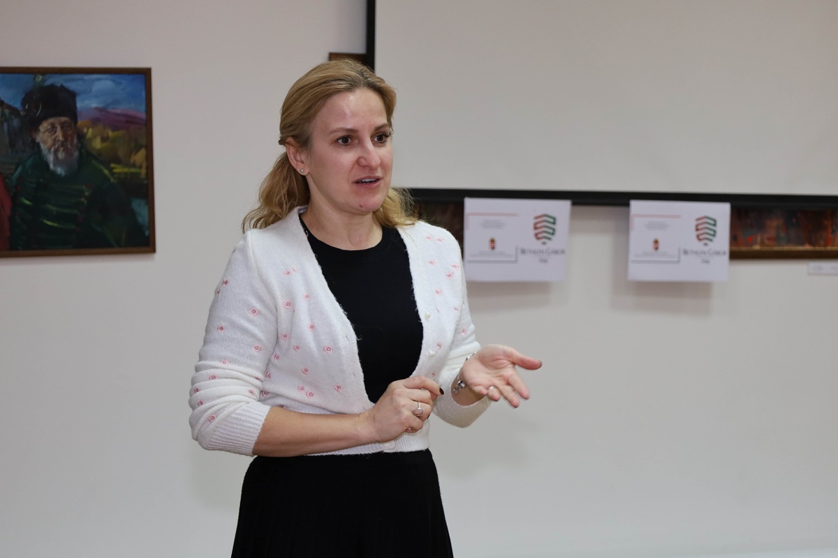 Присутніх привітала доцентка кафедри психології, початкової, дошкільної освіти та управління закладом освіти Закарпатського угорського університету імені Ференца Ракоці ІІ, очільниця Психологічної служби Емьовке Бергхауер-Олас.