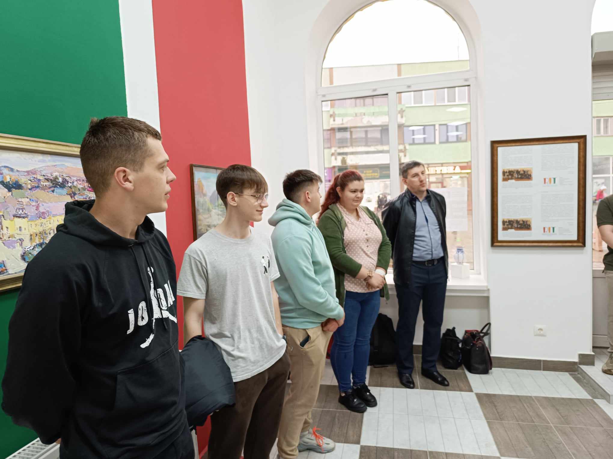 Під час навчального візиту студенти поринули у світ живопису та мистецтва завдяки розповіді голови ГО «Товариство угорських митців Закарпаття образотворчого та прикладного мистецтва імені Імре Ревеса» (RIT), кураторки галереї «Na’Conxypán» Агнеш Кулін, а також ознайомилися з експозицією робіт членів RIТ «Весняна виставка», а саме: Ференца Ерфана, Золтана Гоголи, Василя Габди, Наталії Грабар, Ендре Гіді, Аттіли Коприви, Агнеш Кулін, Чаби Куташі, Яноша Рейті, Василя Сочки та ін.