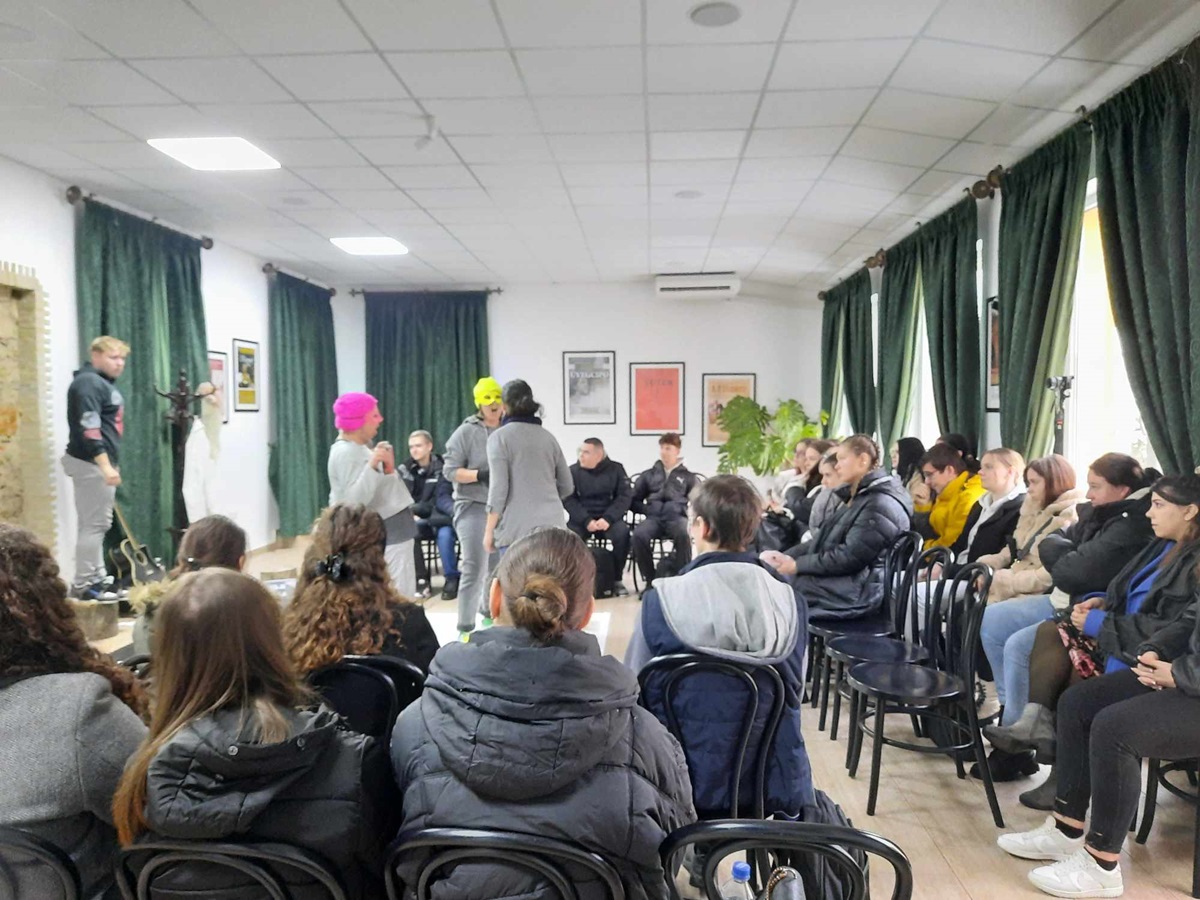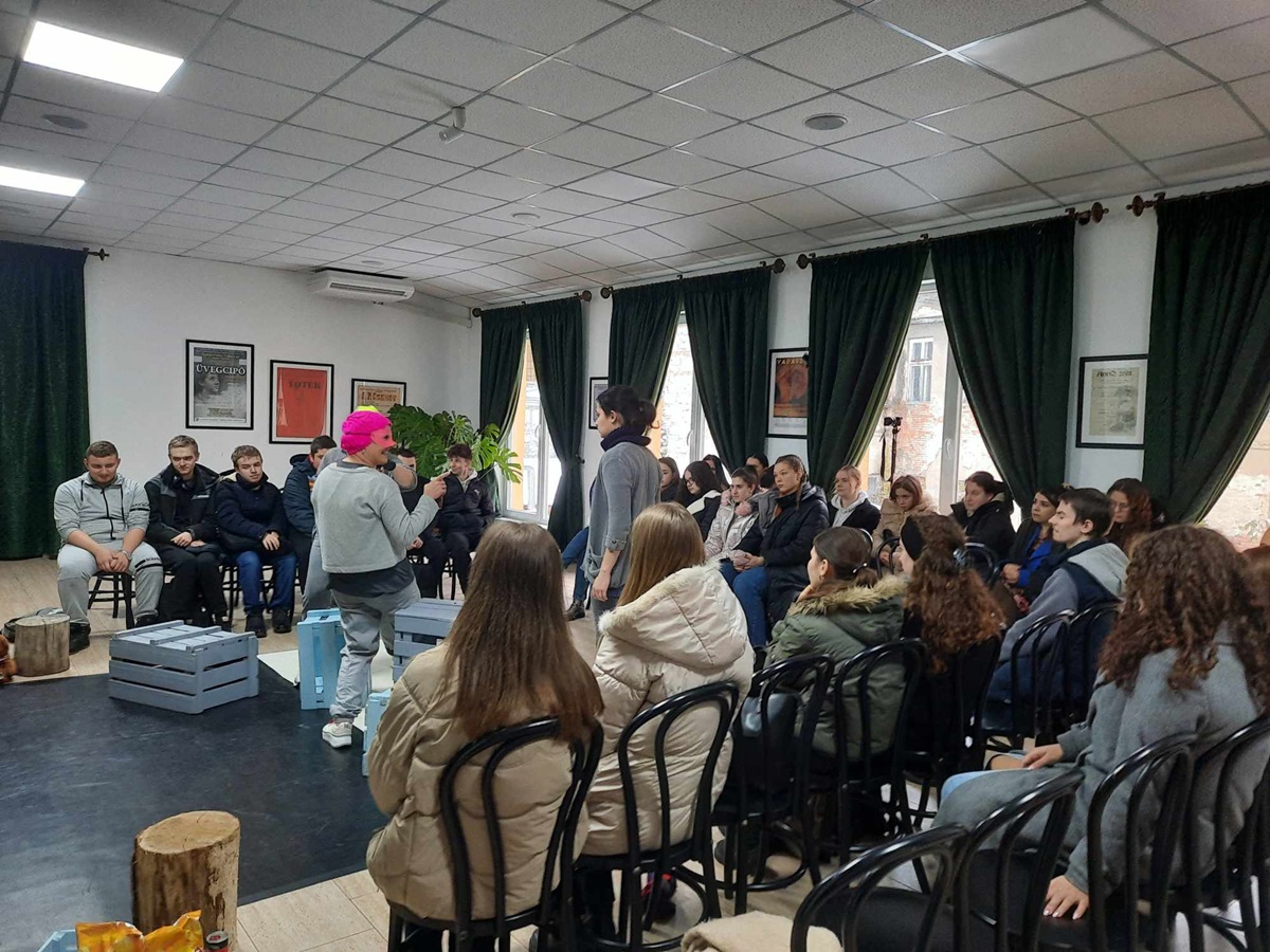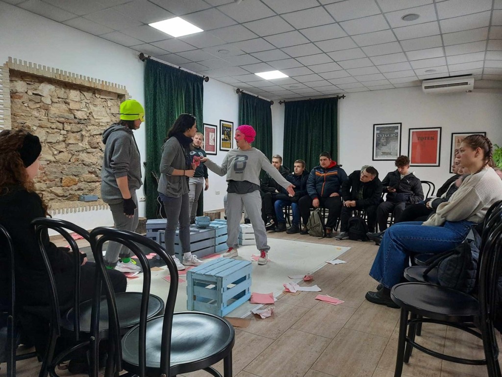 В останній день навчального тижня, на завершення програми «Скажи ні насильству у школі та домаганням на роботі!», студенти мали змогу переглянути інтерактивну виставу «Мене звати Фрея» за участю акторів Закарпатського обласного угорського драматичного театру. Вистава зосереджена на темах відчуження та самотності, які переживає 13-річна дівчина, постійно зазнаючи насильства у колективі класу.