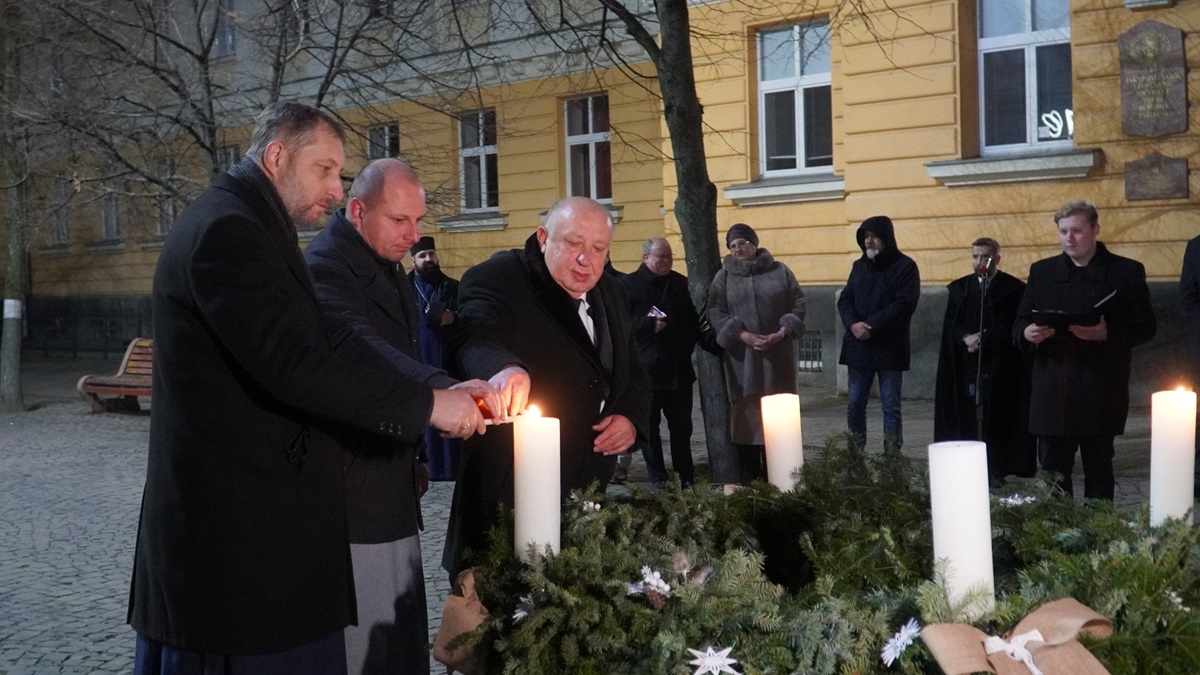 Потім відбулося урочисте запалення третьої свічки під супроводом різдвяних колядок у виконанні хору Берегівської української греко-католицької церкви.