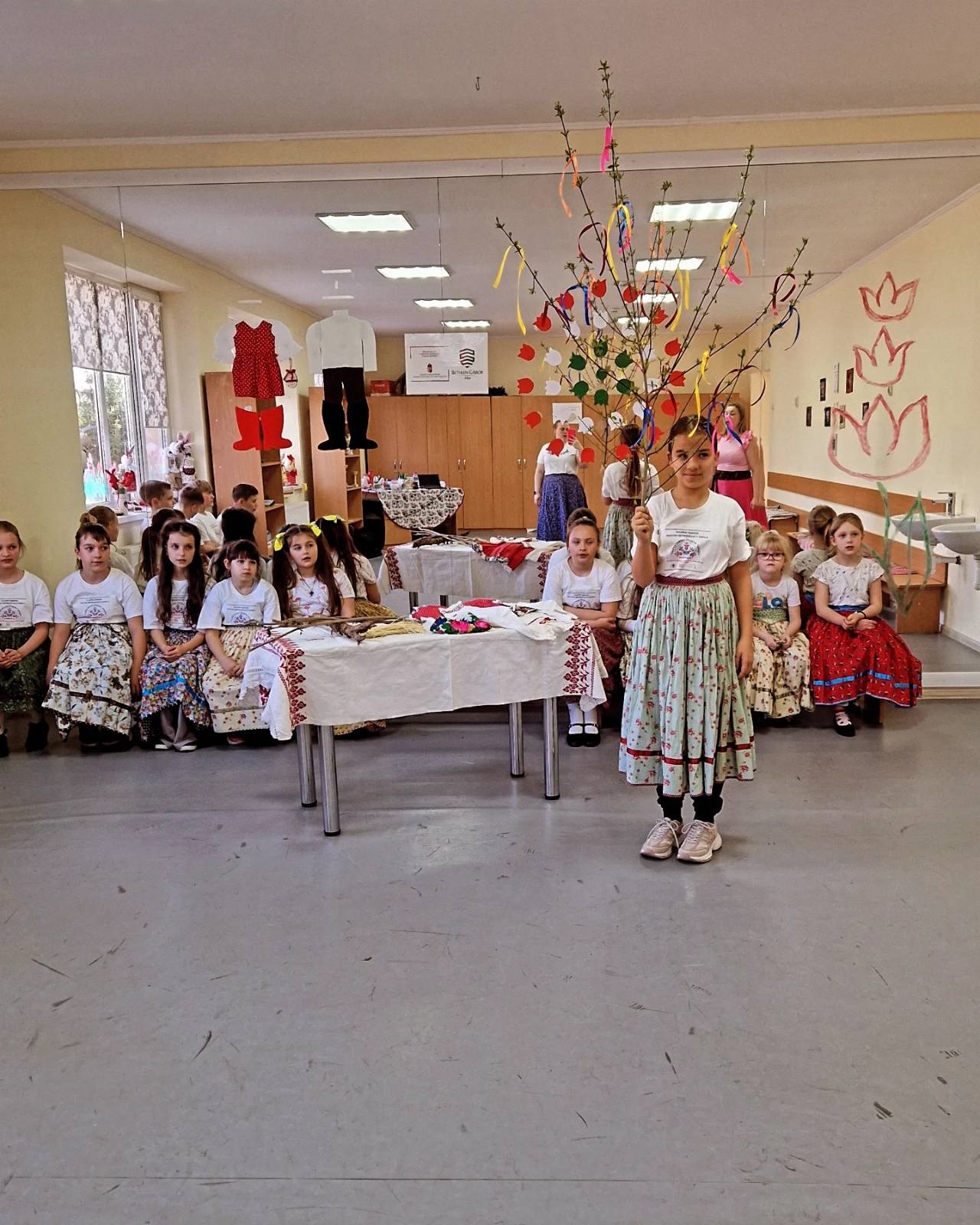У Пийтерфолвівській початковій мистецькій школі «Туліпан Танода» учні досліджували обряди та звичаї, притаманні періоду посту, звертаючи особливу увагу на їхній культурний зв’язок із народними іграми. Святковий тиждень розпочався із Лазаревої суботи: цього дня діти збирали кору та відтворювали давні народні забави. Не оминули увагою й традиції Вербної неділі – педагоги познайомили учнів з обрядом прощання із зимою та прикрашання весняного гілля.