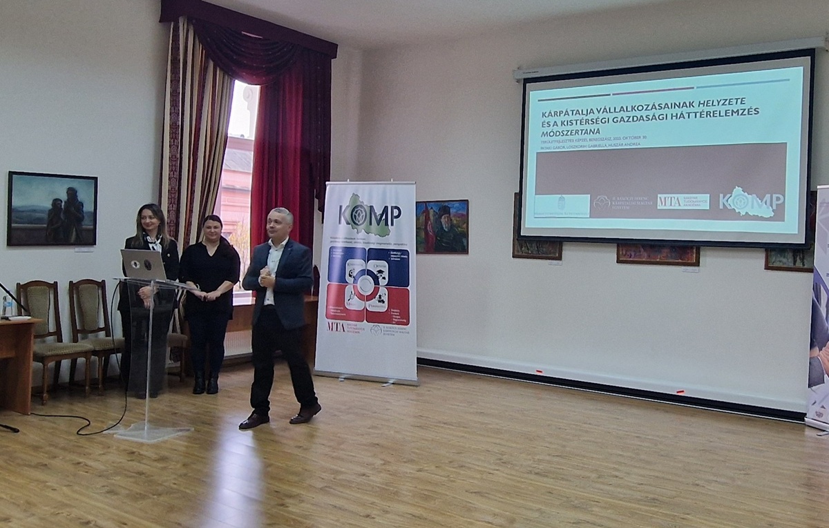 30 жовтня старший викладач Габор Потокі, заступниця завідувача кафедри Габріелла Лоскоріх і віце-президентка СМУПЗ Гусар Андреа провели спільну лекцію на тему дослідницької методології аналізу ситуації в підприємницькому середовищі. У першій частині лекції спікери презентували статистичні дані про суб’єктів господарювання Закарпаття на основі підприємницької статистики до і під час війни, а також розглянули тенденції релокації підприємств. У другій частині лекції були представлені методичні та практичні техніки, а також можливості збору даних, які необхідні для проведення економічного аналізу при плануванні і розробці стратегії розвитку територіальних громад.