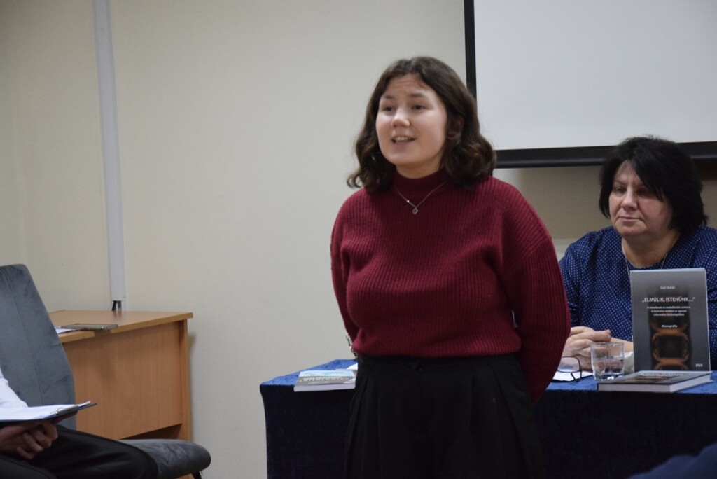 Опісля доцентка угорського відділення кафедри філології Маргарита Кейс презентувала книгу доцентки кафедри Одел Гал «„Відходить у вічність, Боже наш…” – Обряди поховання та запис пісень, рукописні пам’ятки в реформатських церквах регіону Угоча». Видання складається з дванадцяти розділів, які знайомлять з історією Угочі, обрядами поховання та пісенним фольклором у контексті обряду поховання, основними етапами похорону, текстами рукописного пісенника похорону та поминальної панахиди, відспівувачами та їхніми рукописними матеріалами. Маргарита Кейс наголосила, що вибір теми роботи є доречним і актуальним, оскільки темі смерті дослідники приділяли мало уваги, попри те, що вона є одним із вирішальних моментів у житті людини. Авторка ареалом дослідження обрала своє рідне село та його околиці. В ході збору та аналізу матеріалів з’ясувалося, наприклад, наскільки різноманітними бувають звичаї, що асоціюються зі звуками дзвону: за звуком дзвону можна визначити, чи це заклик відвідати храм, чи саме у той час відбувається обряд похорону. Актуальність роботи демонструє і той факт, що практика упорядкування піснеспівника та фіксації обрядових співів у досліджуваних реформатських церквах припинилася майже одночасно з написанням книги. У збірнику також міститься чимало цінних матеріалів про обряди поховання, які стануть у нагоді й під час проведення досліджень у галузі фольклористики, антропології та релігієзнавства.