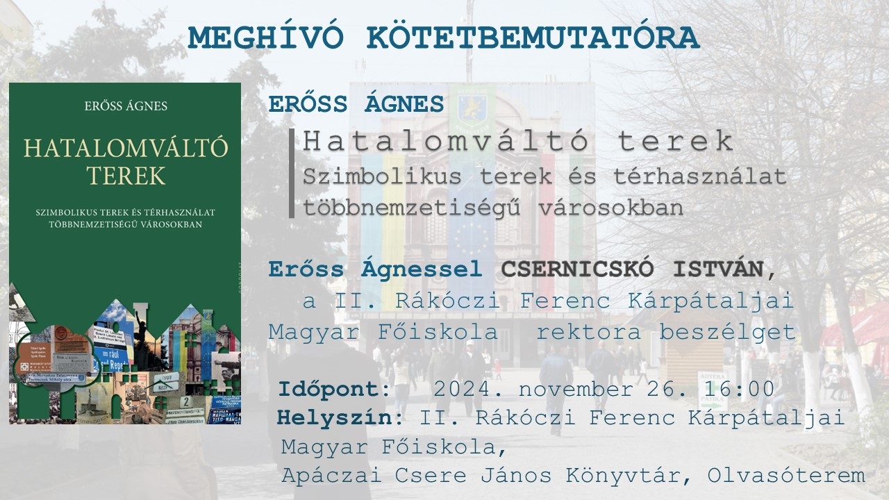 26 листопада з 11:00 до 15:00 за к.ч. у приміщенні виставки мінералів імені Єнева Баркача ЗУІ ім. Ф. Ракоці ІІ для викладачів та студентів закладу відбудеться екскурсія на тему «Світ незвичних форм каменю». Крім того, 26 листопада о 17:00 за к.ч. у бібліотеці імені Опацоі Чере Яноша навчального закладу відбудеться презентація книги Аґнеш Еревш «Простір для зміни влади. Символічні простори та використання простору в мультинаціональних містах». З авторкою розмовлятиме ректор ЗУІ ім. Ф. Ракоці ІІ Степан Черничко.