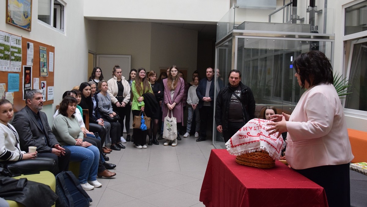 Наповп зацікавлених, що зібралися у вестибюлі філологічного кампусу, привітала доцент угорського відділення кафедри філології Маргарита Кейс. Висловила радість з того, що захід викликав такий великий інтерес, адже викладачі кафедри доклали всіх зусиль, аби якомога цікавіше представити присутнім великодні традиції та звичаї. Потім фольклористка розповіла про традиційний великодній кошик, а також про традиційний пасхальний набір продуктів, які зазвичай несли до храму для освячення. Одними з найважливіших продуктів було вершкове масло, сформоване у вигляді ягняти, крашанки, буряк, хрін, вино, шинка та ковбаса, а також паска, накрита тканиною, так звана пасхальна скатертина. Поміж тим учасники заходу довідалися й про те, що після пасхального богослужіння наші пращури поспішали додому, бо за повір’ям, той, хто пастиме задніх, того ж року помре, а той, хто прийде першим, неабияка вдача випаде: врожай під час жнив буде хорошим.