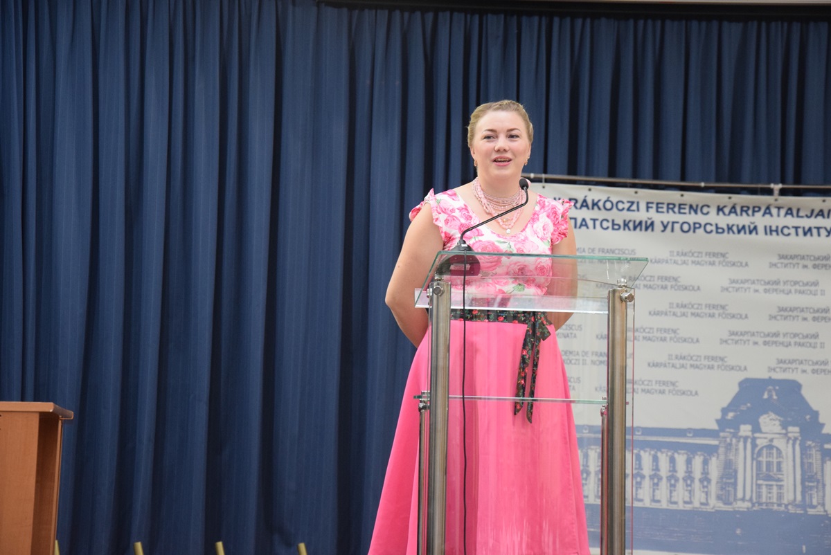 Потім слово взяла співробітниця ЗУІ ім. Ф. Ракоці ІІ, солістка народних співів, координаторка заходу Ержебет Кокаш, яка коротко ознайомила присутніх з історією виникнення народних ігор. За її словами, сьогодні ансамбль народного танцю та ансамбль народних співів ПЗ «Дитяча школа мистецтв угорського народу «Туліпан Танода», студенти Фахового коледжу ЗУІ ім. Ф. Ракоці ІІ, вихованці дитячого садка та студенти спеціальностей «Дошкільна освіта» та «Початкова освіта» об’єдналися у ансамбль народного танцю «Цібере», щоб представити глядачам секрети нанизування, як один з видів дидактичної гри.