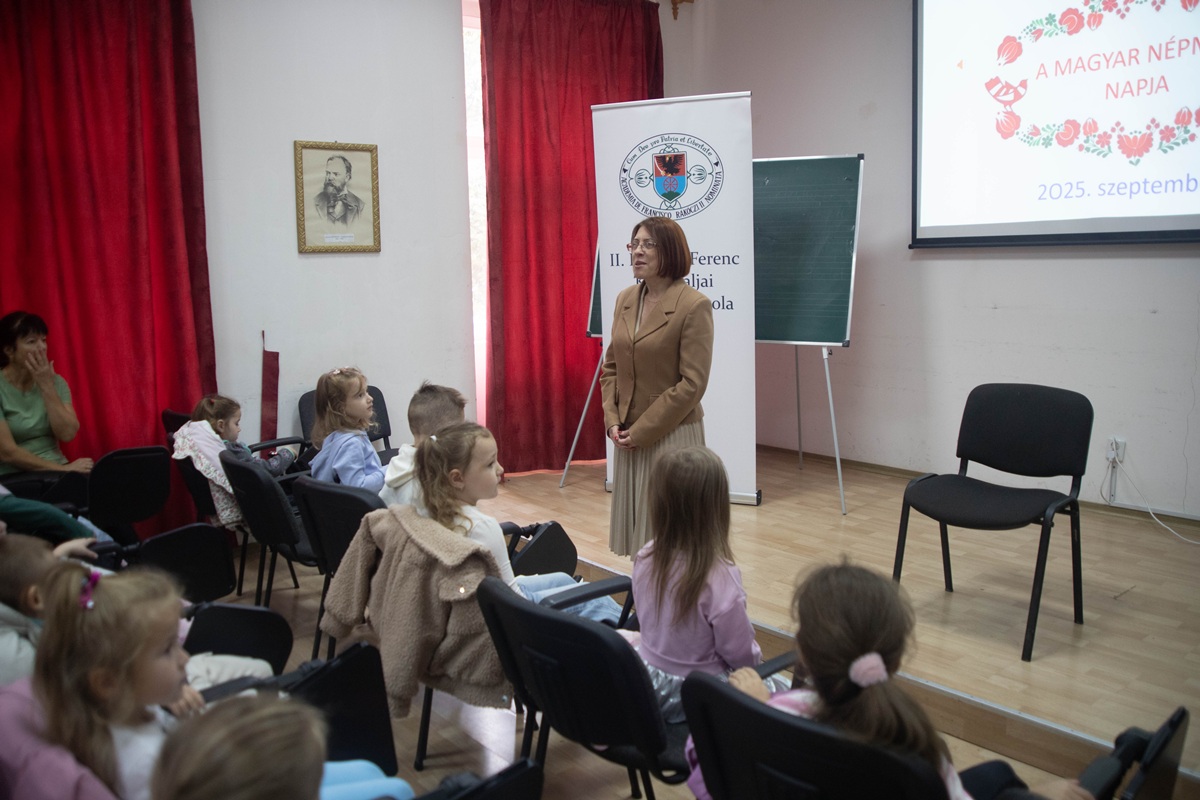 Після вітальних слів студентка Закарпатського угорського інституту імені Ференца Ракоці ІІ Анастасія Тарацкезі розповіла дітям казку «A hamis vak» («Фальшивий сліпий»), а учень Великоберезького закладу загальної середньої освіти імені Пейтера Добраі Даніель Мондик зачитав малюкам казку «A talléros kalap» («Капелюх з монетами»).
