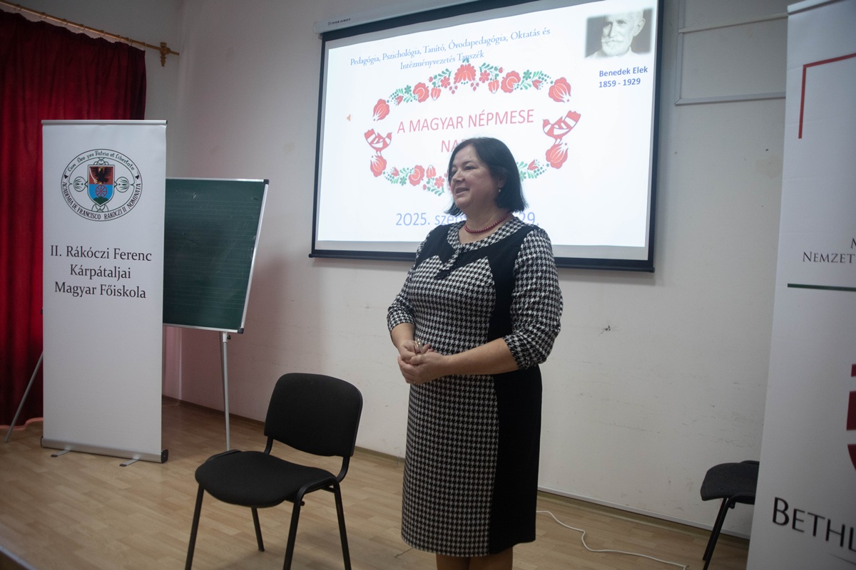Згодом слово взяла викладачка кафедри Єва Габода, яка акцентувала увагу на значенні народних казок як інструменту виховання, а також підкреслила прагнення викладачів та студентів кафедри щороку вшановувати пам’ять видатних казкарів.