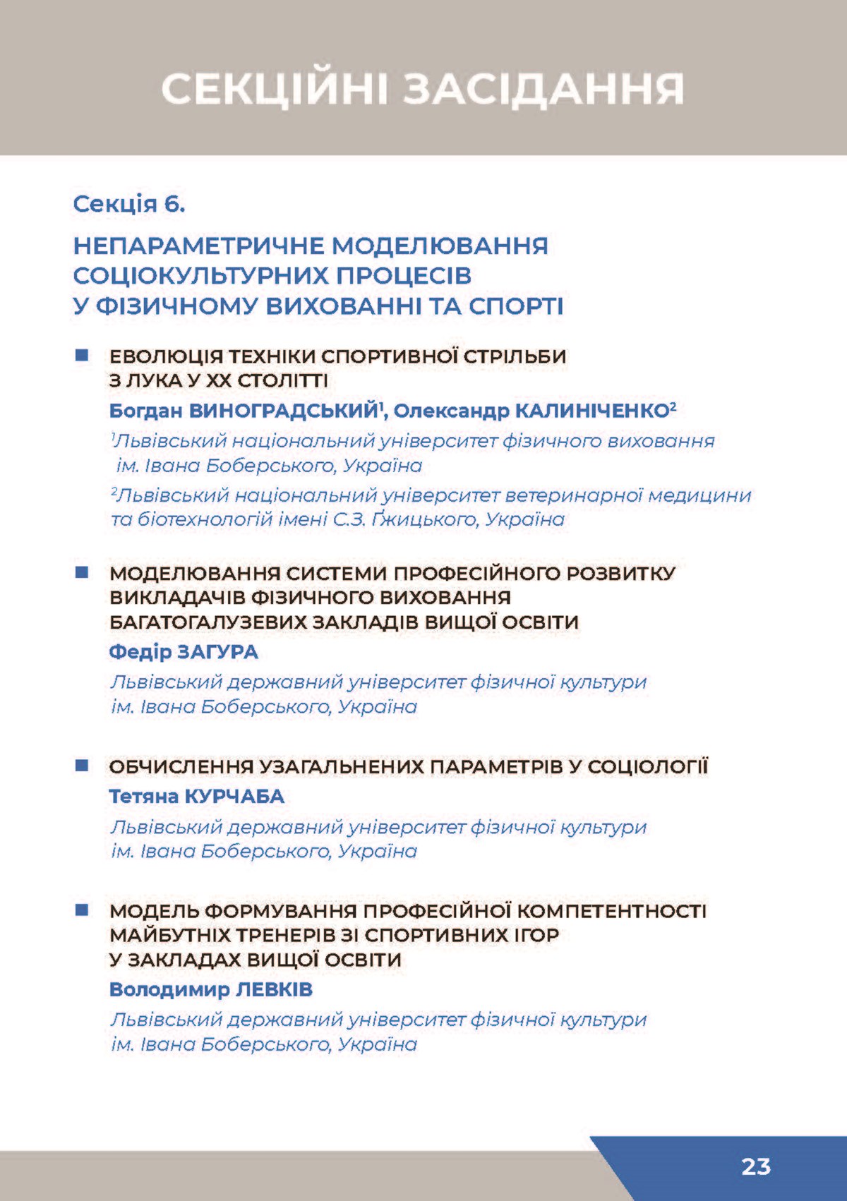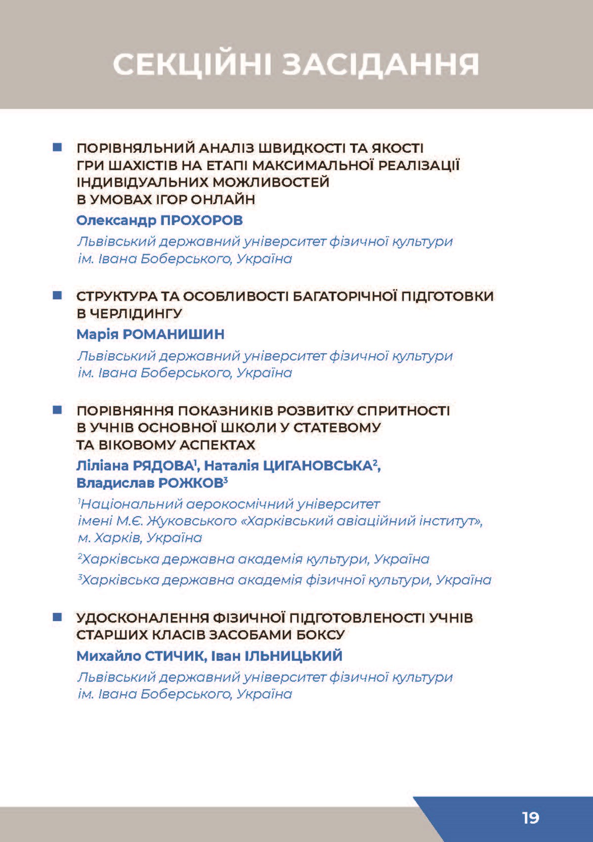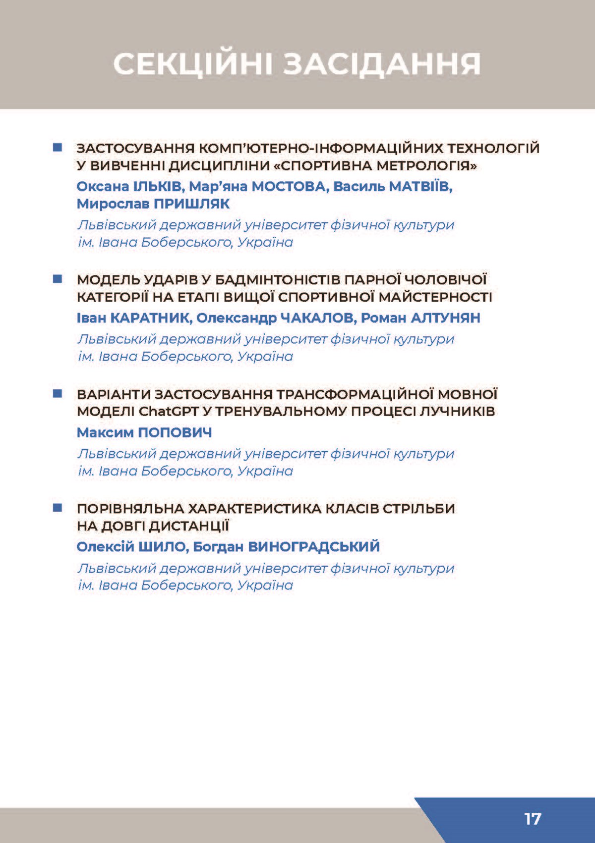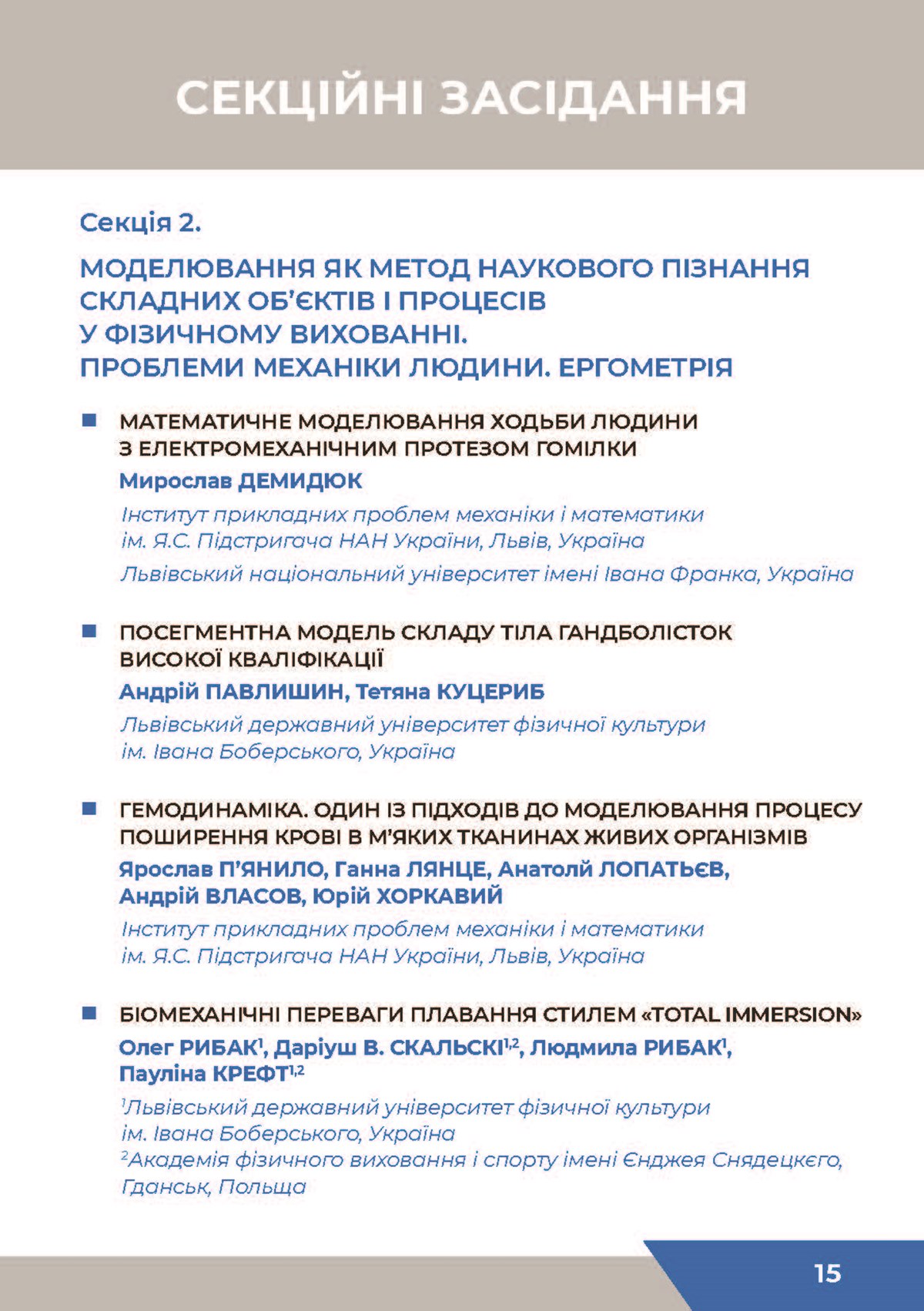 22 вересня, наступного дня конференції, відбудуться секційні засідання, де учасники заслухають доповіді відомих лекторів, присвячені питанням впровадження інформаційних технологій у фізичному вихованні.
