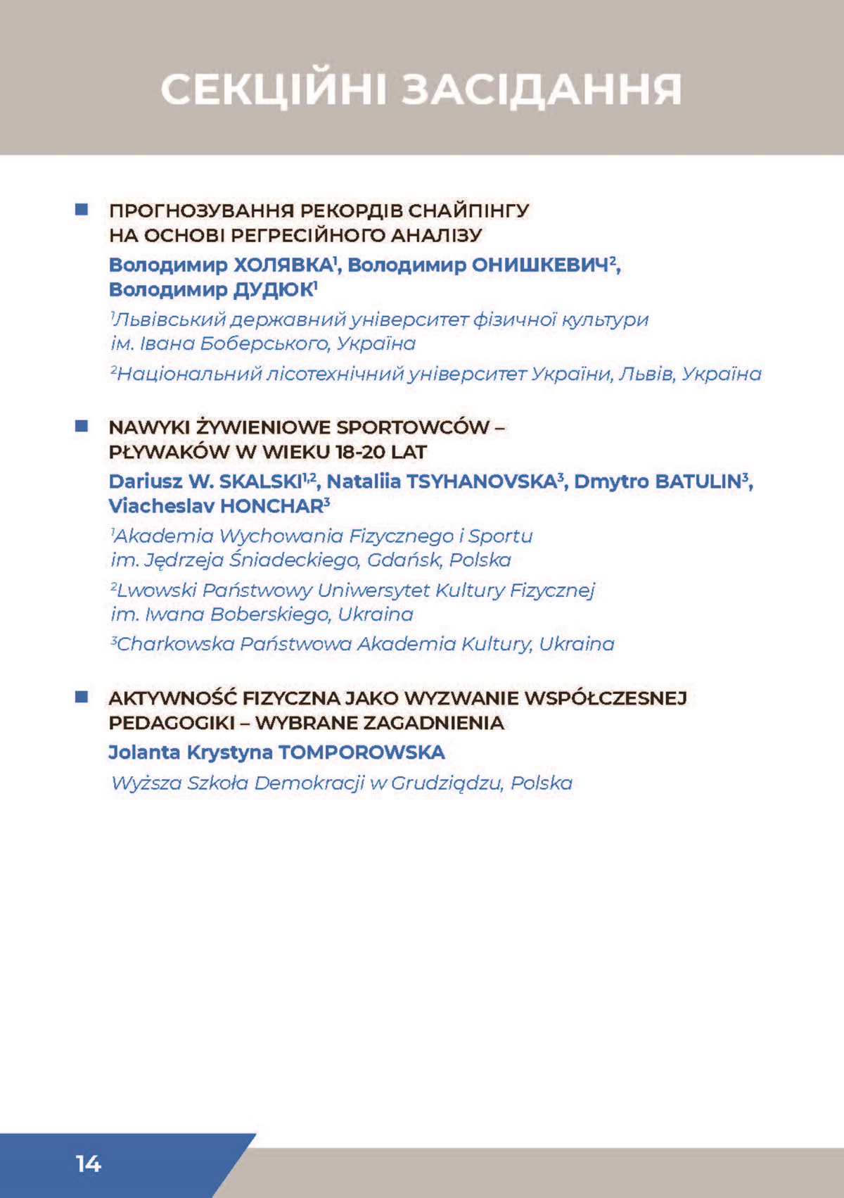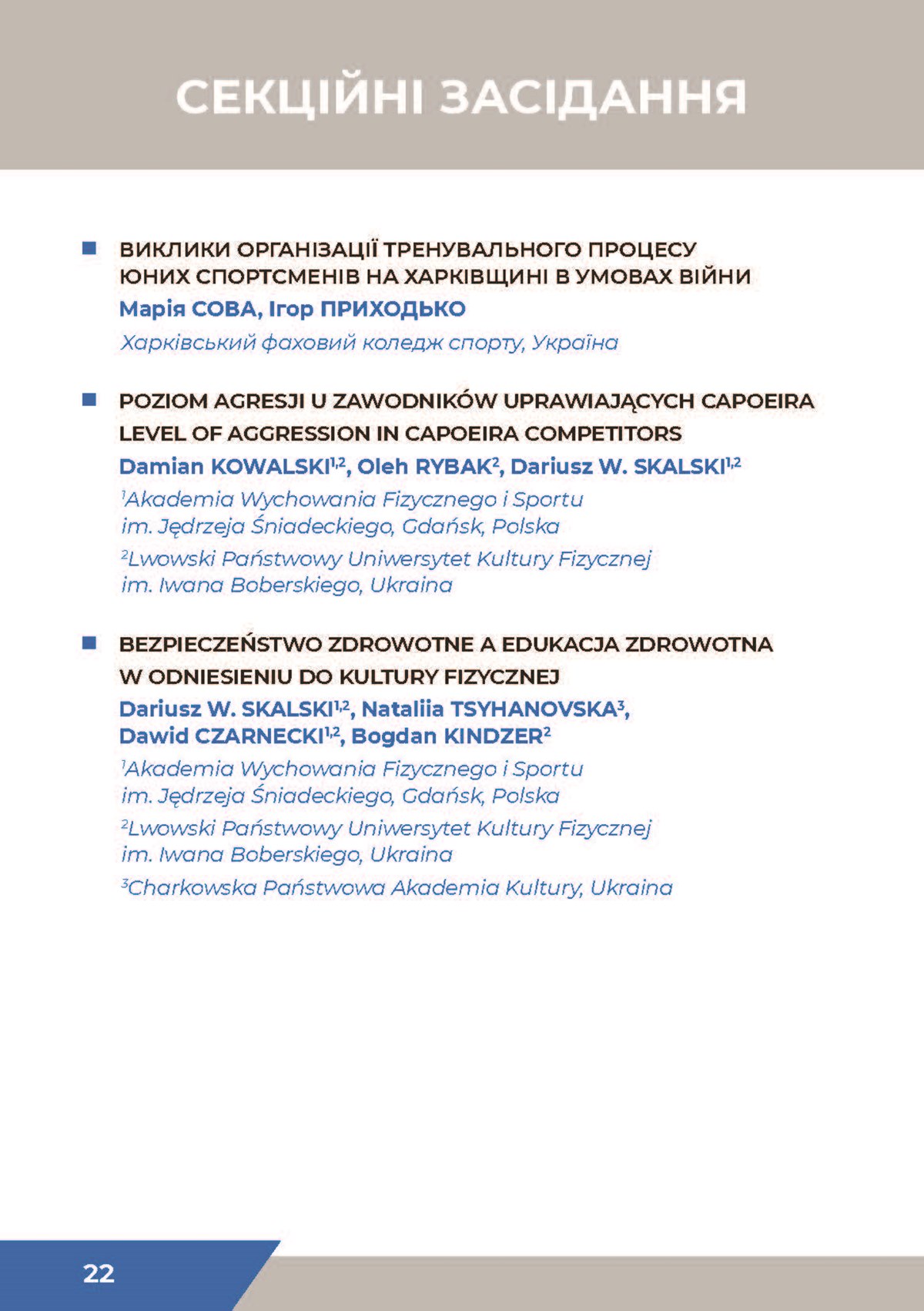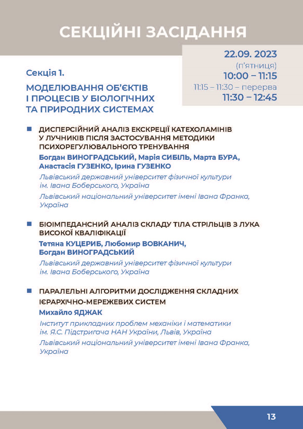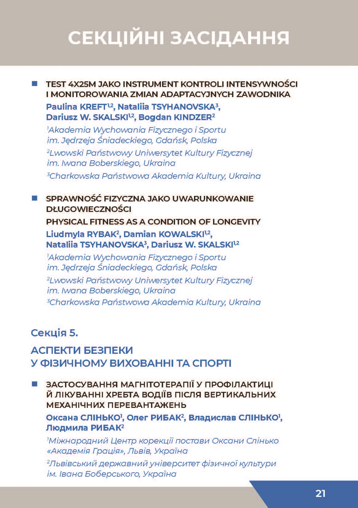 22 вересня, наступного дня конференції, відбудуться секційні засідання, де учасники заслухають доповіді відомих лекторів, присвячені питанням впровадження інформаційних технологій у фізичному вихованні.