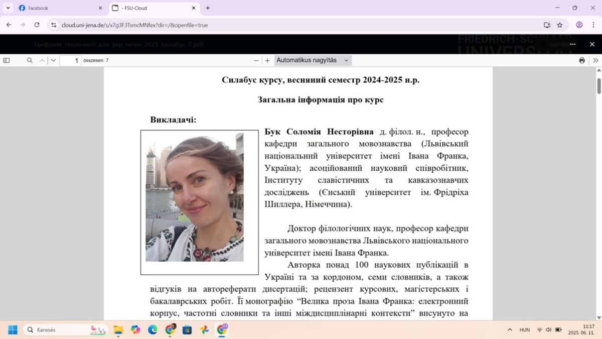 Курси «Цифрові технології для української мови», що проводився в межах проєкту «Онлайнові курси з цифрової української філології» Єнського університету, став для мене справжнім проривом у розумінні ролі сучасного філолога. Ознайомлення з такими інструментами, як DeepL, Стимулус, mova.info, Corpora, CoCoCo, ГРАК, TextAttributor, LanguageTool, дало змогу не лише опанувати низку важливих цифрових ресурсів, а й переосмислити мову як цілісну, гнучку та системну структуру. Особливу цінність становило усвідомлення того, як ці технології можуть ефективно інтегруватися у наукову діяльність, освітній процес, аналіз текстів та формування критичного мислення. Вагомий внесок у моє професійне зростання зробили висококваліфіковані викладачки – Бук Соломія Несторівна та Пронь Христина Василівна. Їхня глибока обізнаність, щирість у спілкуванні та чітка, системна подача матеріалу справили на мене сильне враження. Щотижневе навчання супроводжувалося новими відкриттями, а сама дисципліна допомогла відчути справжню синергію між теоретичними знаннями та практичними навичками.