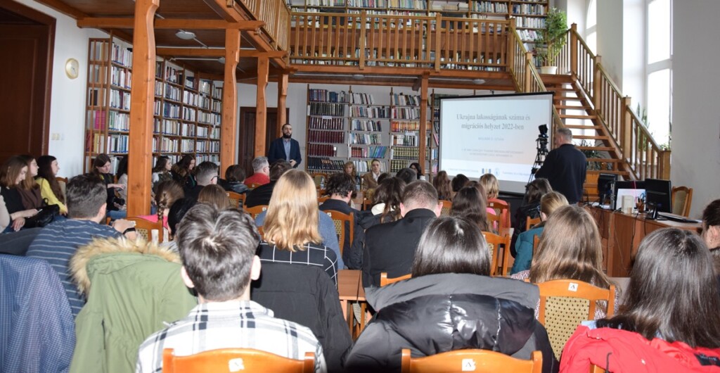 Після перегляду відбувся цикл лекцій. Спершу Молнар Д. Стефан Стефанович, науковий співробітник Науково-дослідного центру імені Тіводора Легоцькі, представив лекцію на тему «Населення України та міграційна ситуація у 2022 році». Далі співробітниця Науково-дослідного центру імені Тіводора Легоцькі, Кароліна Дорчі представила роль Закарпатських громад у опіці внутрішньо переміщених осіб зі Східної та Центральної України. Останнім, Каталін Поллоі представила свою презентацію на тему «Переселенці російсько-української війни в берегівському районі».