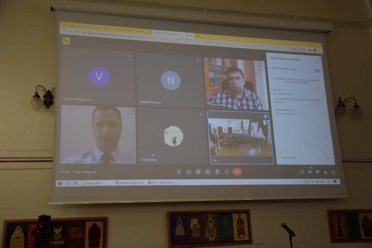 Захід розпочався з культурної програми. Відтак студентка 4-го курсу угорського відділення кафедри філології Аліз-Марія Лійвоі та студентка 2-го курсу магістратури угорського відділення Каталін Сабов поділилися результатами своїх наукових робіт, які здобули призові місця на Міжнародному літературному конкурсі «Голосом сучасності».