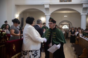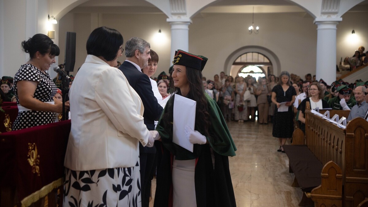Після оголошення основних положень щодо процедури вручення дипломів президентка Закарпатського угорського інституту імені Ференца Ракоці ІІ Ільдіко Орос разом із ректором Степаном Черничком вручили випускникам заслужені документи про вищу освіту, після цього прозвучав студентський гімн.
