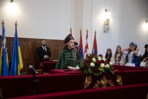 Після виступів високоповажних гостей зі словами подяки від імені випускників звернулася студентка випускного курсу денної форми навчання за спеціальністю «Англійська мова та література» Барта Клаудія. Наступним етапом стала урочиста церемонія складання студентської присяги, яку оголосила студентка останнього курсу денної форми навчання за цією ж спеціальністю, Леврінц Андреа.