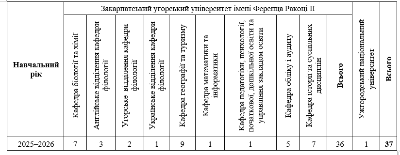 Із 38 заявників 37 навчаються в Закарпатському угорському університеті імені Ференца Ракоці ІІ, а один є здобувачем вищої освіти в Ужгородському національному університеті. 37 кандидатів, які успішно пройшли всі етапи реєстрації, отримали можливість представити свої наукові задуми на вступному іспиті, що відбувся 17 лютого 2026 року. Відповідно до положень, які регулюють участь у програмі ЗУФК, одного студента було виключено зі списку претендентів, оскільки у 2025/2026 навчальному році він уже отримав грант на проведення наукових досліджень у межах іншої стипендіальної програми – стипендії імені Мартон Арон для підтримки обдарованих студентів.