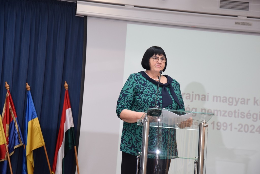 Після спільного виконання гімнів слово взяла голова ЗУПТ Ільдіко Орос, яка представила детальний звіт про діяльність товариства у 2024 році.