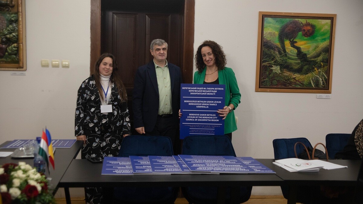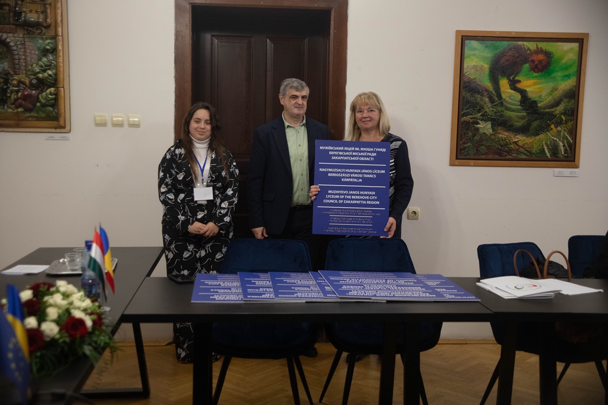 Завершальним етапом дводенної конференції в рамках міжнародного проєкту «Подолання мовних бар’єрів у громадському житті прикордонних регіонів» стало вручення організаторами тримовних табличок з назвами Берегівського центру надання адміністративних послуг (ЦНАП) та закладів освіти Берегівської об’єднаної територіальної громади. Церемонія передачі відбулася 26 листопада в Закарпатському угорському університеті імені Ференца Ракоці II.