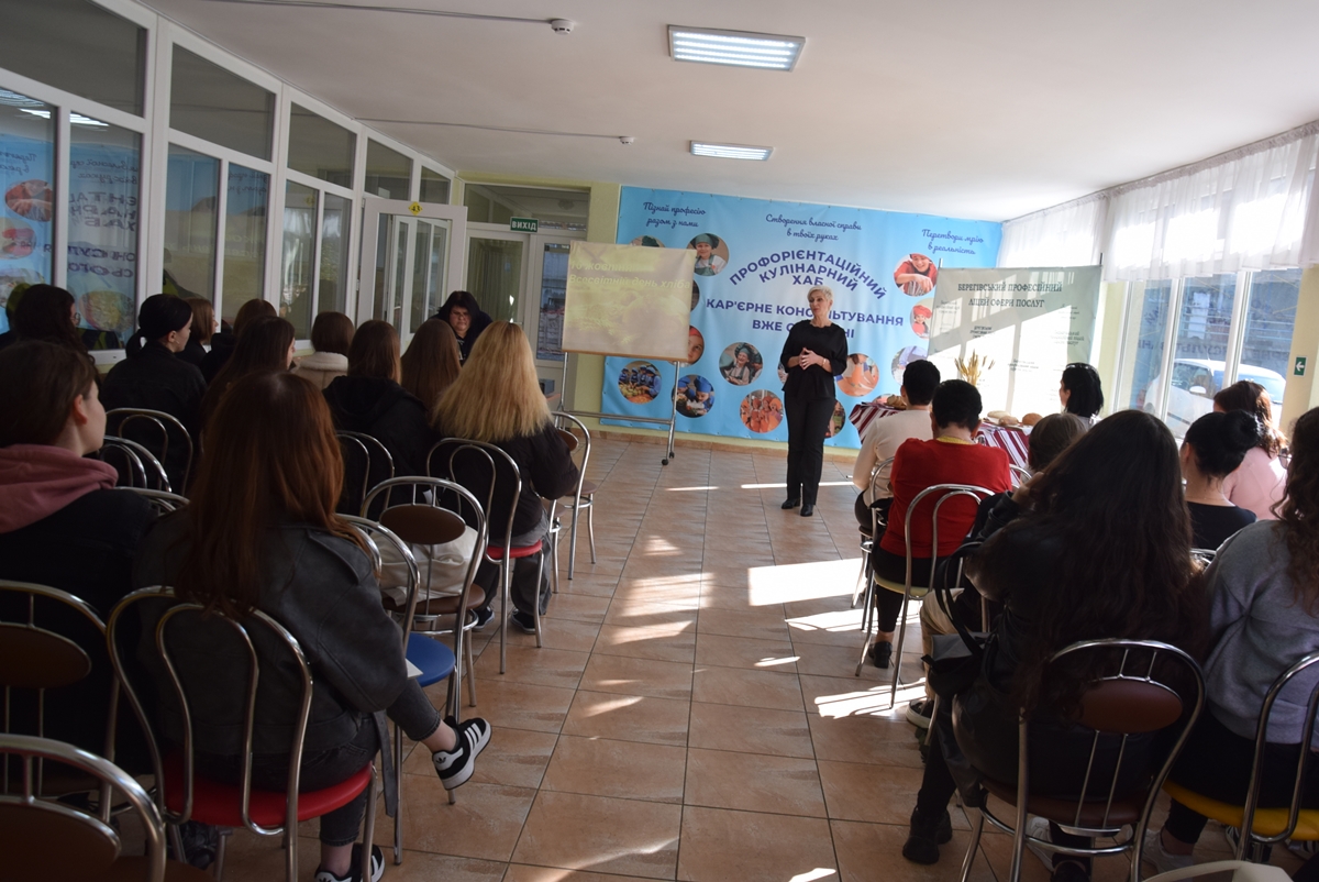 16 жовтня 2024 року в рамках святкування Всесвітнього дня хліба, здобувачі кафедри філології освітнього рівня 014 «Середня освіта» та 035 «Філологія» першого (бакалаврського) рівня вищої освіти відвідали Берегівський професійний ліцей сфери послуг, де присутніх привітала керівник Оксана Миколаївна Кулієвич.