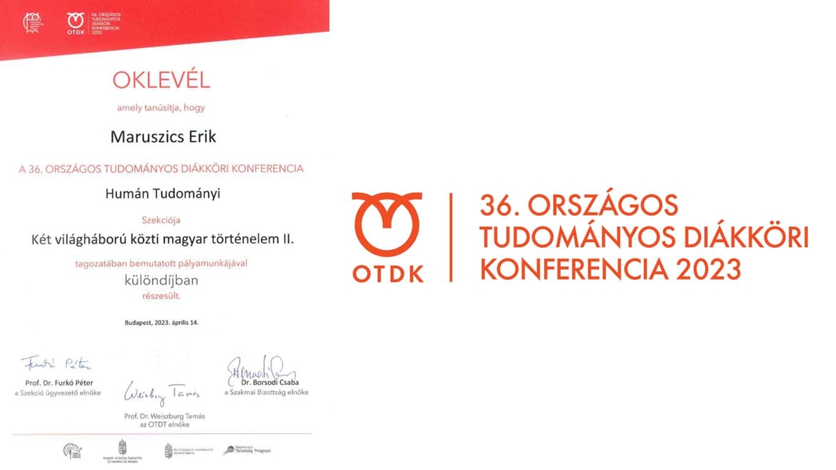 Організатором секції став факультет гуманітарних і соціальних наук Реформаторського університету ім. Кароля Гашпара. У конференції взяв участь наш колега Ерік Марусич, колишній студент магістратури. Його робота «Історія Угорщини у період між двома світовими війнами та після Другої світової війни» була відзначена журі спеціальною премією. Головою журі був Габор Дьяні, професор (Інститут історії, Центр гуманітарних досліджень, Угорська академія наук), до складу журі також увійшли Агнес Тот, професор (Інститут дослідження проблем національних меншин, Центр суспільних наук) та Міклош Хорват, професор (Реформатський університет ім. Гашпара Каролі).