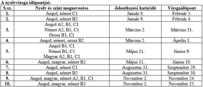 № | Мова та рівень | Термін подачі заявки | Дата іспиту |