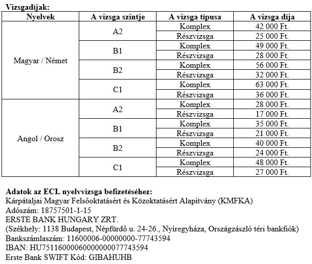 У Берегові п’ять разів на рік є можливість складати мовний іспит ECL з англійської, угорської, німецької і російської мови рівня A2 (базовий), B1(середній), B2 (прсунутий) і C1 (професійний).