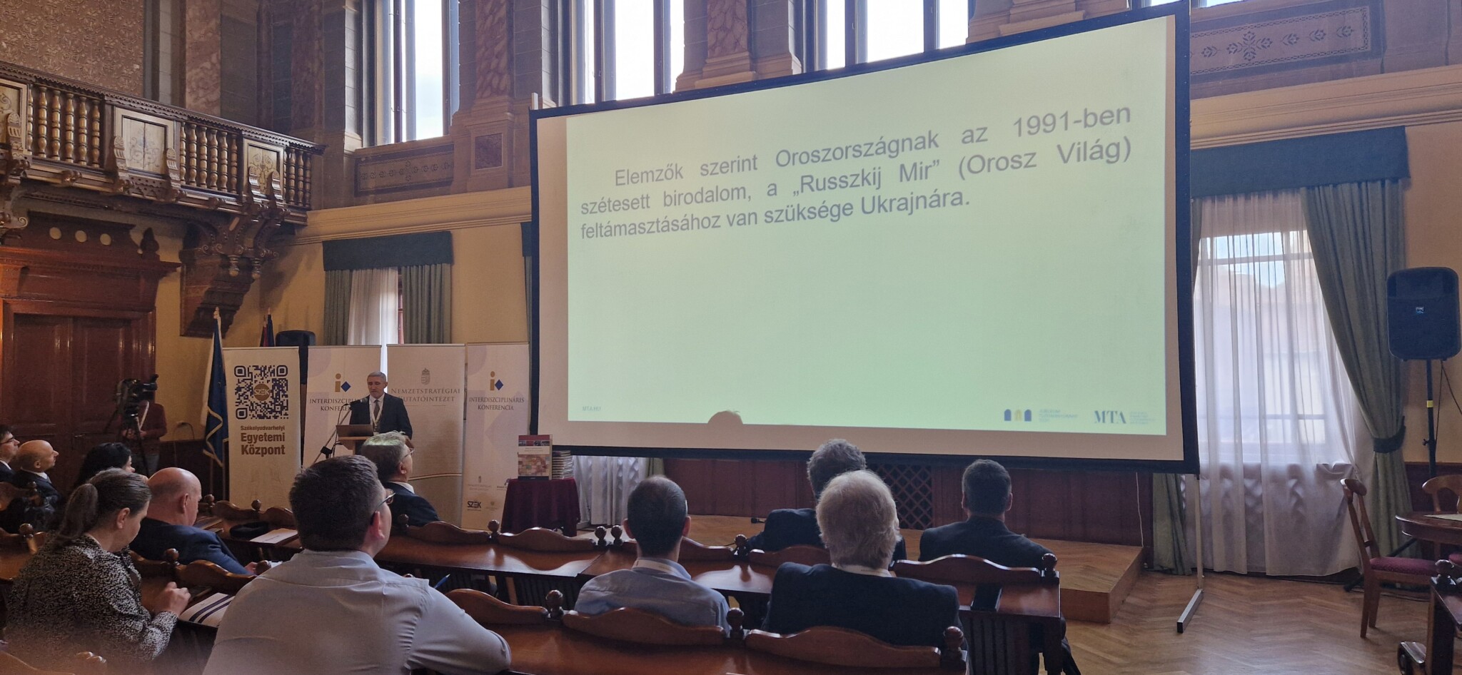 На пленарному засіданні конференції Йосип Молнар, завідувач кафедри географії та туризму Закарпатського угорського університету імені Ференца Ракоці II, виступив з доповіддю на тему «Україна на геополітичній шахівниці». Одну із секцій конференції, яка отримала назву «Закарпаття у тіні російсько-української війни», очолила викладачка нашої кафедри, Катерина Коваль. Вона також активно долучилася до успіху роботи секції як співавторка двох доповідей, а саме: Патрік Татрої – Агнеш Еривш – Юліанна Когут-Феркі – Катерина Коваль: «Зміни у міграційних моделях закарпатських угорців після початку російсько-української війни», а також Катерина Коваль – Юліанна Когут-Феркі – Агнеш Еривш – Патрік Татрої: «Соціальні процеси та стратегії виживання угорської громади Закарпаття в умовах війни».