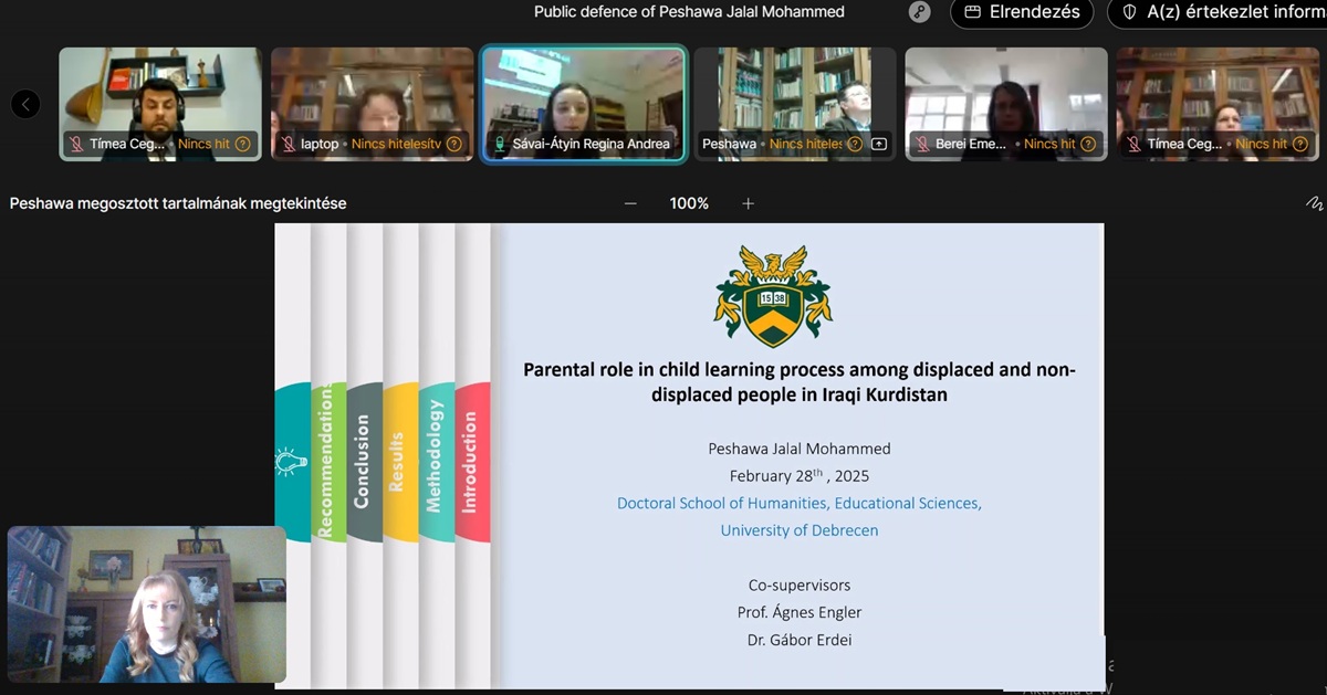 Доцентка кафедри педагогіки, психології, початкової, дошкільної освіти та управління закладом освіти Закарпатського угорського інституту імені Ференца Ракоці ІІ, наукова співробітниця Науково-дослідного центру імені Легоцькі Тіводора Каталін Поллоі стала опоненткою на захисті дисертації доктора філософії Пешави Джалали Мохаммеда, який відбувся 28 лютого 2025 року в Дебреценському університеті за напрямом «Освіта та освітні науки», у гібридній формі, англійською мовою. Здобувачка науковою ступеня проходила підготовку за стипендіальною програмою «Stipendium Hungaricum». У своїй роботі вона досліджувала важливість ролі батьків у процесі навчання дітей серед внутрішньо переміщених осіб та корінних жителів в іракському Курдистані (Parental Role in Child Learning Process among Displaced and Non-Displaced People in Iraqi Kurdistan). Головою комітету стала проф. д-р Габріелла Пустаі.