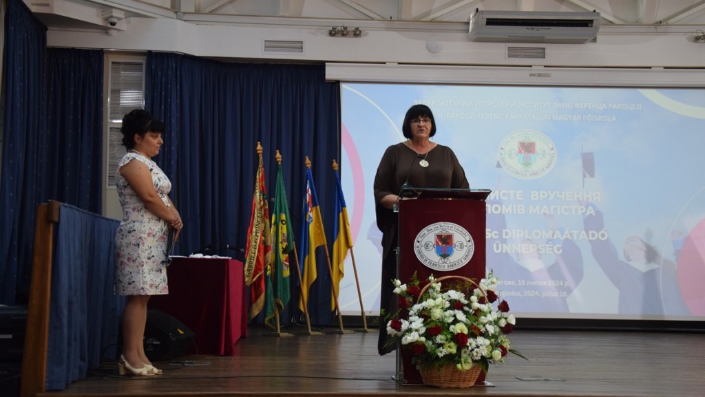 Після цього президентка ЗУІ ім. Ф. Ракоці ІІ Ільдіко Орос та ректор Степан Черничко вручили випускникам заслужені дипломи, а учасників програми подвійних дипломів ЗУІ ім. Ф. Ракоці ІІ та Мішкольцького університету привітали з одержанням ступеня «магістр» керівництво ЗУІ ім. Ф. Ракоці ІІ та ректорка Мішкольцького університету Зіта Горват, а опісля пролунав гімн студента.