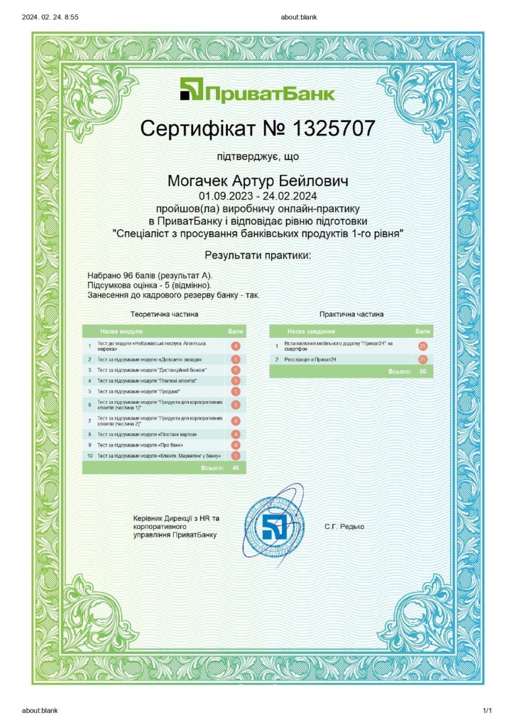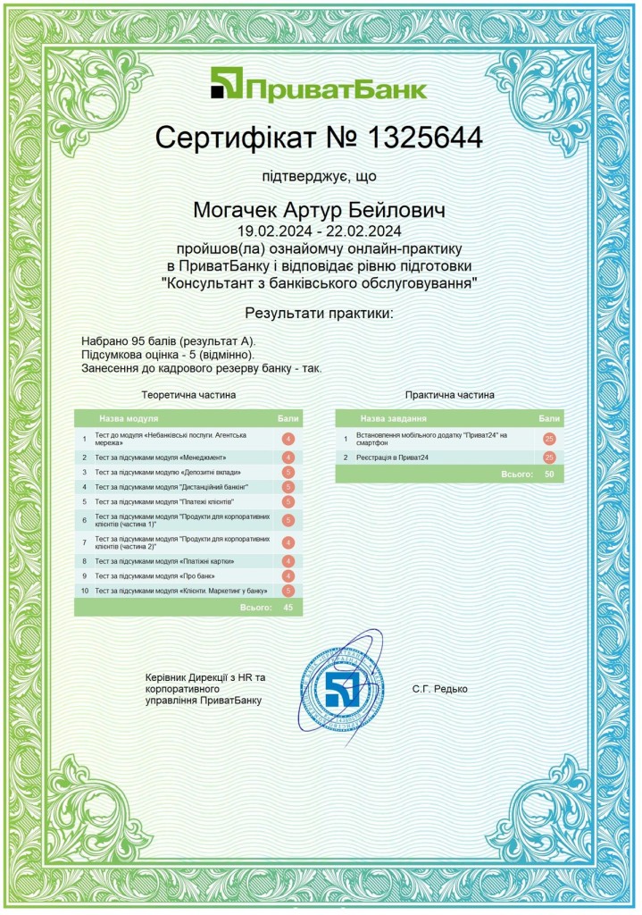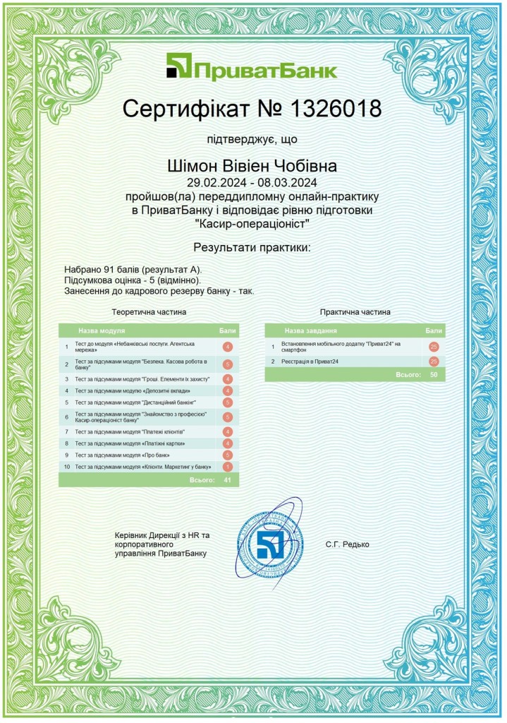 Виробнича онлайн-практика здобувачів освіти-обліковців в АТ “ПриватБанк”