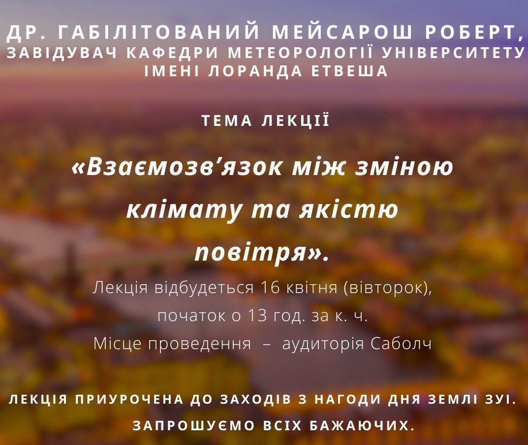 «Взаємозв’язки між зміною клімату та якістю повітря» – лекція габілітованого доктора Роберта Мейсароша