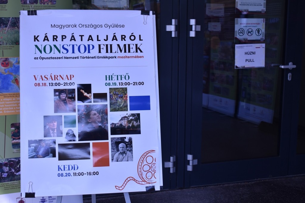 Крім того, упродовж чотирьох днів охочі могли побувати у кінотеатрі, де на відвідувачів чекали кіносеанси закарпатських стрічок. Серед іншого, глядачі мали змогу переглянути фільми «A tölgyfa» («Дуб») про життя ЗУІ ім. Ф. Ракоці ІІ, фільм «Disznóvágás Nagyberegen» («Забій свині у Великих Берегах»), який демонструє звичаї Великих Берегів, а також фільм «A sátan fattya» (Байстрюк сатани»).